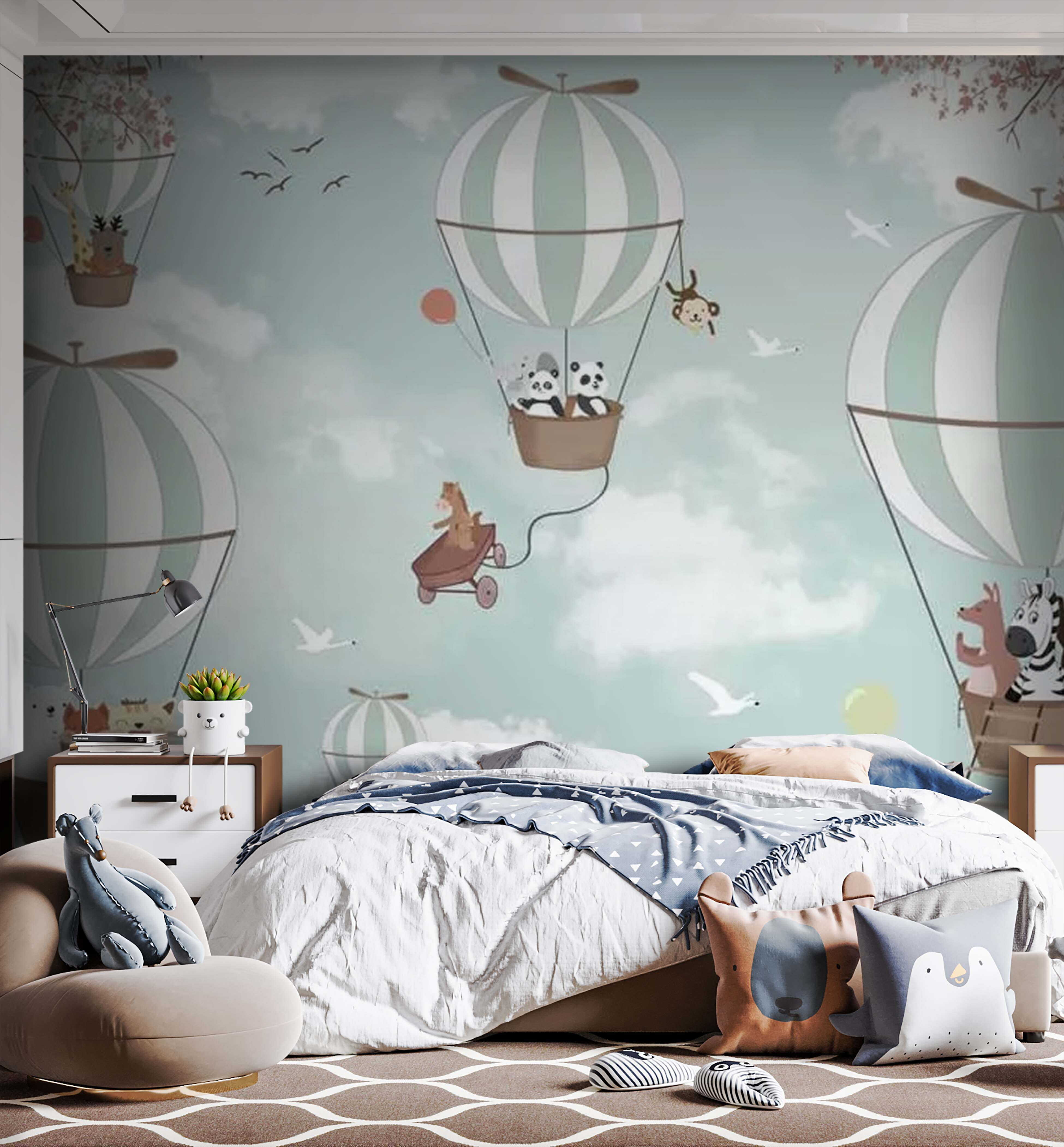 Stel je voor dat je de kinderkamer een grillige draai geeft met de muurschildering “Cartoon Panda on a Swing”! Deze muurschildering is perfect voor kleine dromers en tovert elke ruimte om in een hemel vol panda’s die wegschommelen op schattige heteluchtballonnen. Het is alsof je elke dag in een lief sprookjesboek stapt. Die schattige panda’s geven de kamer een licht en vrolijk gevoel, alsof er net een zacht briesje door de kamer waait. Of het nu voor de kamer van een dochter, de speelkamer van een zoon of zelfs een kinderkamer is, deze muurschildering heeft de perfecte mix van plezier en rust. Bovendien zorgen de zachte pastelkleuren voor een rustgevende sfeer die ideaal is om tot rust te komen na een dag vol avonturen. Stel je een verhaaltje voor onder deze zwevende panda’s – een instant klassiek moment! En het mooiste? Het gezicht van je kleintje zien oplichten als ze hun nieuwe pandamaatjes zien. Pure magie op de muren… wat is er niet leuk aan?