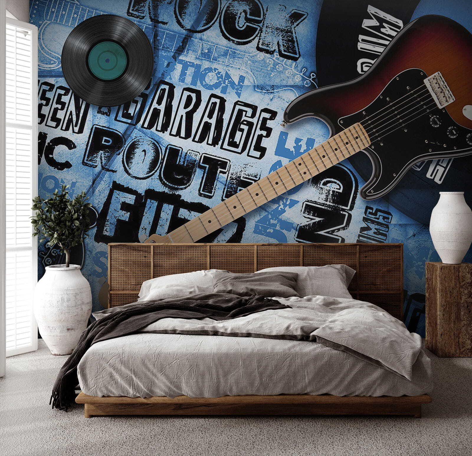 Zin in een vleugje rock-‘n-roll in je interieur? Deze muurschildering “Rock and Roll Dreams Unleashed” is de perfecte jam – het is alsof je een coole vintage platenwinkel binnenstapt. De levendige blues, scherpe lettertypes en iconische gitaren schreeuwen attitude en rebellie uit. Perfect voor tieners die op het punt staan hun droom van een optreden waar te maken of jongeren met sterren in hun ogen. Stel je voor dat je elke dag wakker wordt met deze energie – het is als een gitaarriff voor je muren! Geweldig om een slaapkamer of muziekkamer een echte vibe te geven. Bovendien ziet het er gewoon geweldig uit!