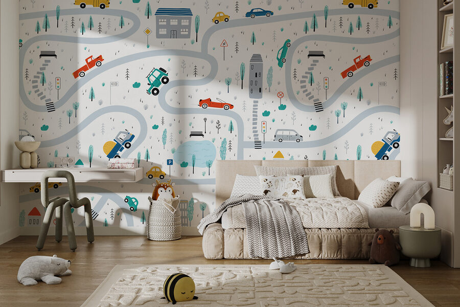 Heb je een kind dat dol is op auto’s en gebouwen? Deze “Muurschilderingen Kaart van Auto’s en Gebouwen” is een droom! Stel je voor: levendige wegen die over de hele muur slingeren, kleurrijke auto’s die rondscheuren en charmante kleine gebouwen die het beeld bepalen. Het is net alsof je in een mini stadslandschap woont! Deze muurschildering doet elke kinderkamer oplichten en verandert gewone muren in speelse avonturen. Perfect om verhalen te vertellen of om de verbeelding van de kleintjes aan te wakkeren – denk maar aan de verhaaltjes voor het slapengaan! Bovendien zorgen de zachte kleuren en grillige tekeningen ervoor dat de ruimte gezellig en leuk aanvoelt. Het is niet zomaar een muurschildering; het is een uitnodiging om elke dag te ontdekken, te dromen en te spelen.