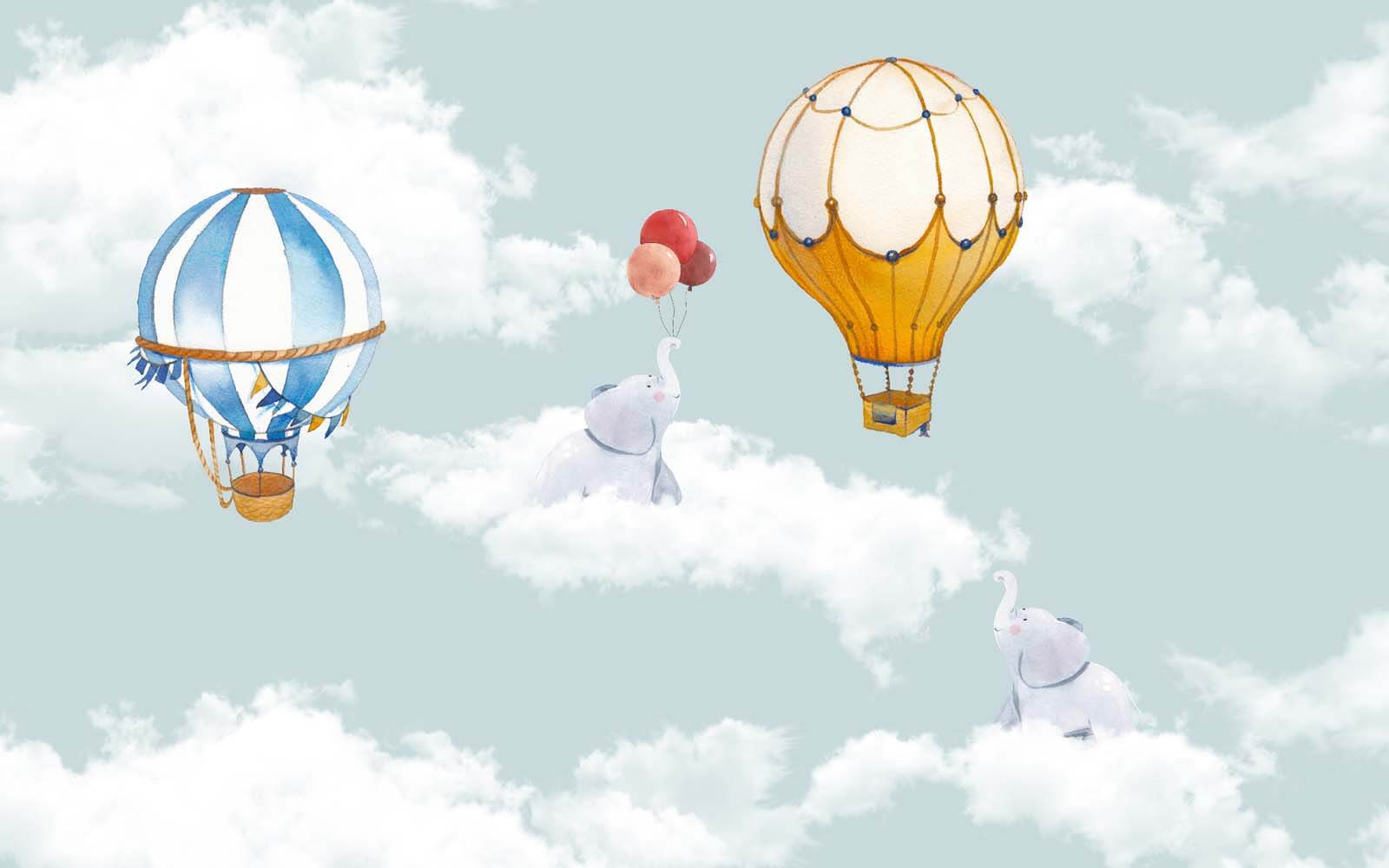 Stel je voor dat je een kinderkamer omtovert in een dromerig avontuur. Deze muurschildering “Hete luchtballon in de lucht” is precies wat je nodig hebt! Stel je grillige heteluchtballonnen voor die door pluizige wolken zweven, met speelse olifantjes erbij die lieve ballonnetjes vasthouden. Het is net alsof je in een zacht, pastelkleurig verhalenboek stapt… De lichtblauwe lucht en zachte witte wolken creëren zo’n rustgevende sfeer – perfect om de verbeelding van een kind aan te wakkeren of ze in slaap te sussen.