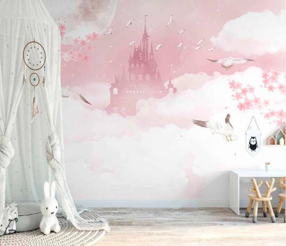 Stel je een klein meisje voor dat in bed ligt, naar deze muurschildering staart en wegdroomt in een wereld waar ze kan vliegen met vogels of verborgen kastelen kan verkennen. De rustige kleuren en charmante elementen creëren zo’n rustgevende en fantasierijke ruimte. Het is niet zomaar een muurschildering, het is een avontuur dat begint elke keer dat ze haar kamer binnenstapt!