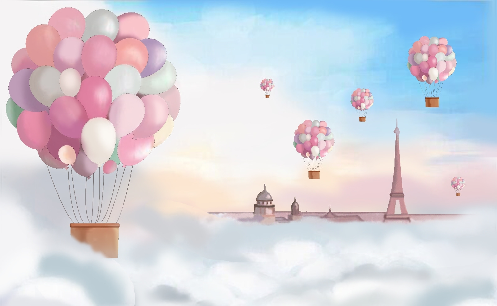 Stel je voor dat je elke dag wakker wordt met dit grillige droomlandschap – zachte tinten van pastelkleurige ballonnen die door de lucht zweven, met die onmiskenbare skyline van Parijs in de verte. “Bunch of Balloons in the Sky” is niet zomaar een muurschildering; het is een uitnodiging om weg te drijven op wolken van verbeelding. Deze muurschildering is perfect voor een kinderkamer of een speels tintje in je woonkamer en brengt een vleugje plezier en een vleugje fantasie. Stel je die slaperige ochtendmomenten voor die opgevrolijkt worden door een uitbarsting van kleur… of de verhaaltjes voor het slapengaan onder een hemel van heteluchtballonnen. Het is als een dagelijkse dosis vreugde – zonder een koffer te pakken!