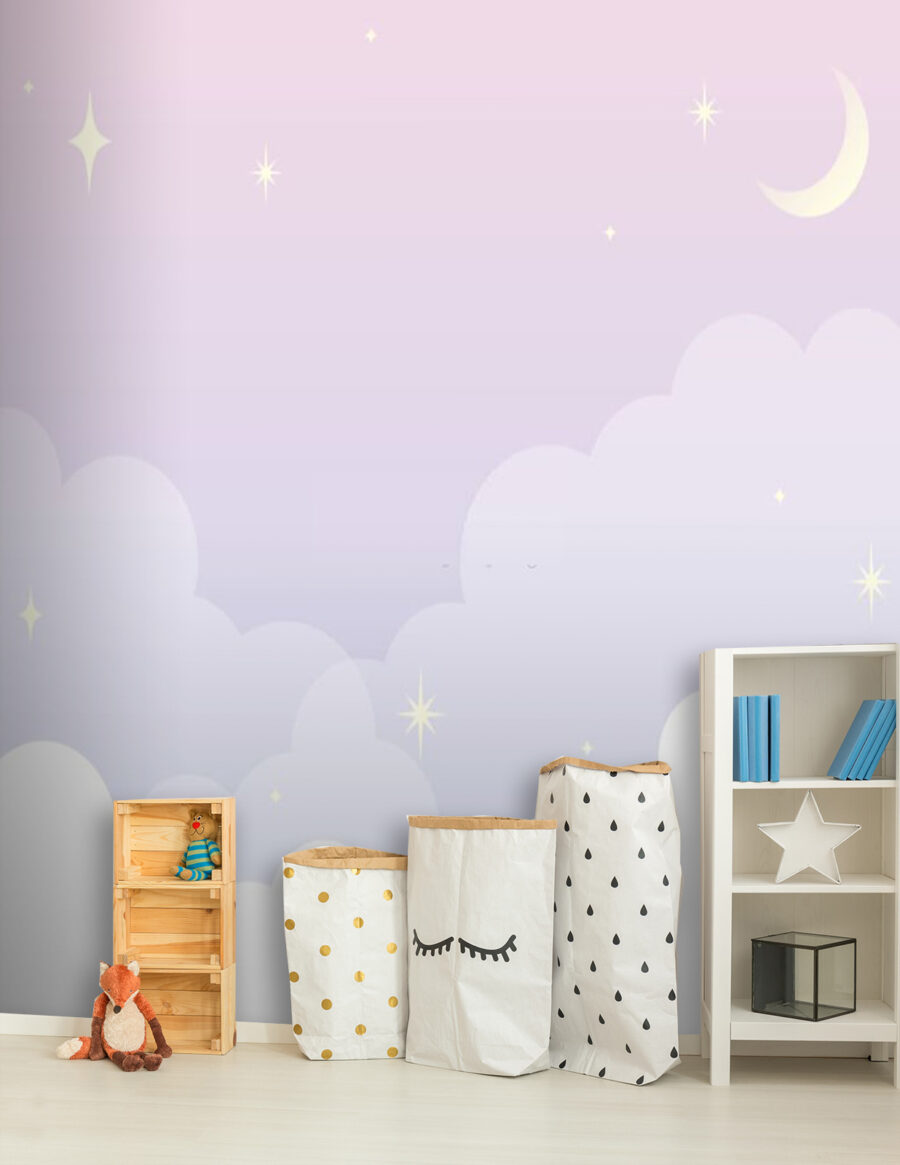 Stel je een ruimte voor waar je kleintje kan dromen tussen de zachtste wolken – de Fotobehang u72088 tilt elke kinderkamer naar een heel nieuw niveau! Met delicate pasteltinten die overgaan in een schemerige hemel, bezaaid met fonkelende sterren en een zachte maansikkel, is het alsof je in een slaapliedje leeft. Deze rustgevende en betoverende muurschildering creëert de perfecte kalme sfeer voor verhaaltjes voor het slapen gaan of middagdutjes. Het is niet alleen decoratie, maar ook een uitnodiging tot verbeelding! Eén blik en je zou wensen dat je weer kind kon zijn om onder deze serene hemel in slaap te vallen. Gezellig, mooi en een beetje magisch… Het is bijna het materiaal waar dromen van gemaakt zijn!