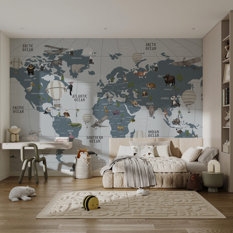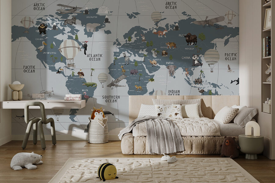 Stel je een wereld voor waar avontuur hoog zweeft, allemaal vanuit het comfort van je kamer. Deze muurschildering “Hot Air Balloon in the Sky” is als een ticket voor reislust, perfect voor kleine ontdekkingsreizigers en dagdromers. Met charmante heteluchtballonnen die over een speelse kaart zweven, kunnen kinderen de hele wereld rondreizen zonder ooit een tas in te pakken. Stel je gegiechel en opwinding voor als ze jungles, oceanen en harige vrienden aanwijzen. Het is niet alleen decor; het is een inspirerende achtergrond voor verhalen, gelach en een vleugje verbeelding. Muren worden vensters naar verre landen, en wie zou daar niet van houden? Perfect voor een kinderkamer of speelkamer, het voegt warmte en eigenzinnigheid toe. Laat de avonturen beginnen!