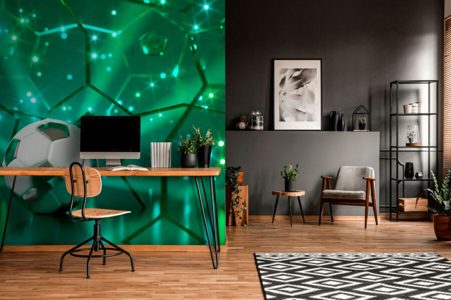 Verander de kinderkamer in een levendige speelzone met deze boeiende muurschildering met een voetbal tegen een gloeiende achtergrond. Stel je de opwinding voor wanneer kleintjes binnenkomen en hun ogen oplichten bij de uitbarsting van energie op de muren. Het is niet zomaar een muurschildering; het is een kickstart voor talloze avonturen. Deze muurschildering is perfect voor aankomende voetbalsterren en geeft de spanning van het spel op een leuke, kleurrijke manier weer. Of het nu inspireert tot fantasierijke wedstrijden of dagdromen over het scoren van doelpunten, dit decorstuk brengt moeiteloos een vrolijke sfeer die elke ruimte levendig maakt. Een geweldige gespreksstarter ook – wie houdt er niet van een beetje voetbalmagie?