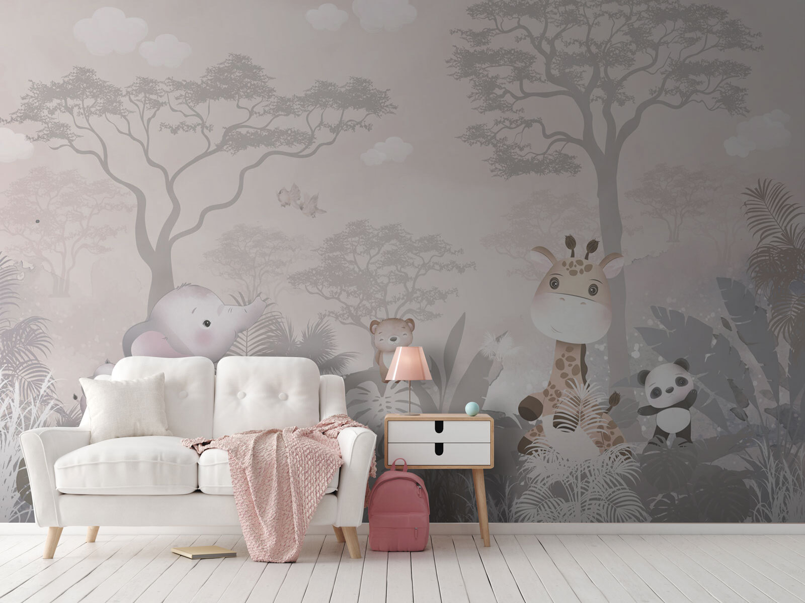 Hallo daar! Heb je de muurschildering “Giraffe zit in een boom” al gezien? Het is het soort kunstwerk dat je direct in een magische, grillige wereld brengt. Deze muurschildering is perfect voor kinderkamers – of zelfs voor het kind in elke volwassene – en laat een heerlijk serene giraffe zien die nonchalant neerstrijkt tussen vriendelijke, breedogige bosvrienden zoals een olifant, panda en beer. De zachte pastelkleuren geven zo’n rustgevende sfeer; het is bijna een slaapliedje voor je muren. Zie je je kleintje er al naar staren voor het slapengaan, terwijl ze verhaaltjes vertelt over de avonturen die deze dieren kunnen beleven? Het is niet zomaar een muurschildering; het is een uitnodiging voor een dromerige ruimte vol verhalen waar de verbeelding de vrije loop kan gaan. Bovendien kun je er elke kamer mee opfleuren met een dosis charme en een vleugje vrolijkheid!