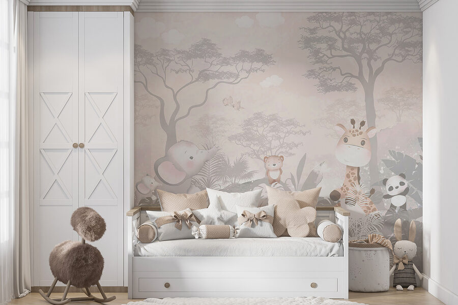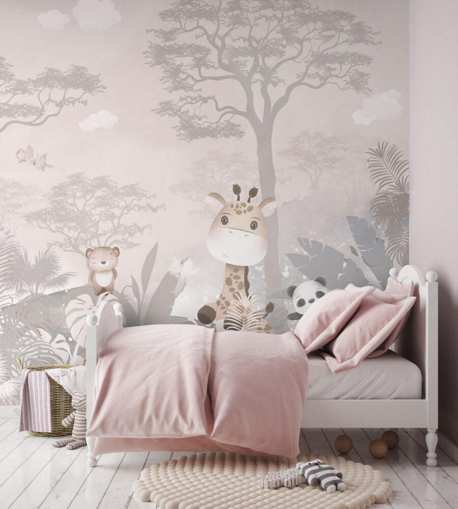 Hallo daar! Heb je de muurschildering “Giraffe zit in een boom” al gezien? Het is het soort kunstwerk dat je direct in een magische, grillige wereld brengt. Deze muurschildering is perfect voor kinderkamers – of zelfs voor het kind in elke volwassene – en laat een heerlijk serene giraffe zien die nonchalant neerstrijkt tussen vriendelijke, breedogige bosvrienden zoals een olifant, panda en beer. De zachte pastelkleuren geven zo’n rustgevende sfeer; het is bijna een slaapliedje voor je muren. Zie je je kleintje er al naar staren voor het slapengaan, terwijl ze verhaaltjes vertelt over de avonturen die deze dieren kunnen beleven? Het is niet zomaar een muurschildering; het is een uitnodiging voor een dromerige ruimte vol verhalen waar de verbeelding de vrije loop kan gaan. Bovendien kun je er elke kamer mee opfleuren met een dosis charme en een vleugje vrolijkheid!