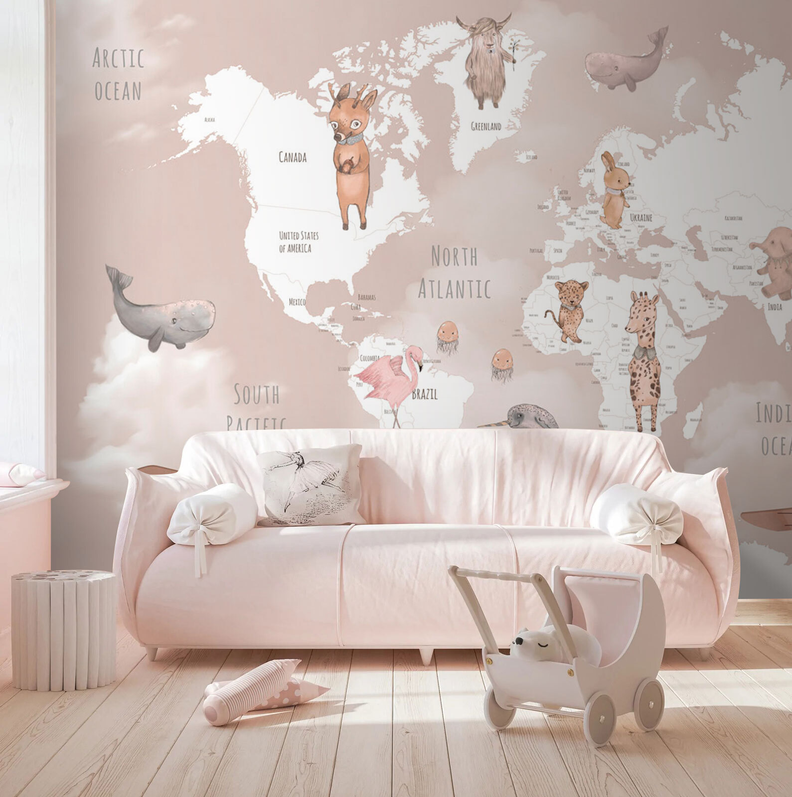 Op zoek naar iets om de kamer van je kind op te fleuren? Kijk dan eens naar deze schattige muurschildering, “Cartoon van een hert”. Perfect om een speels tintje toe te voegen aan elke ruimte, het is niet alleen een mooi plaatje maar een hele wereldkaart bestrooid met grillige dieren. Stel je eens voor dat een nieuwsgierige giraffe je kleintje elke ochtend begroet – dat is pas avontuur!