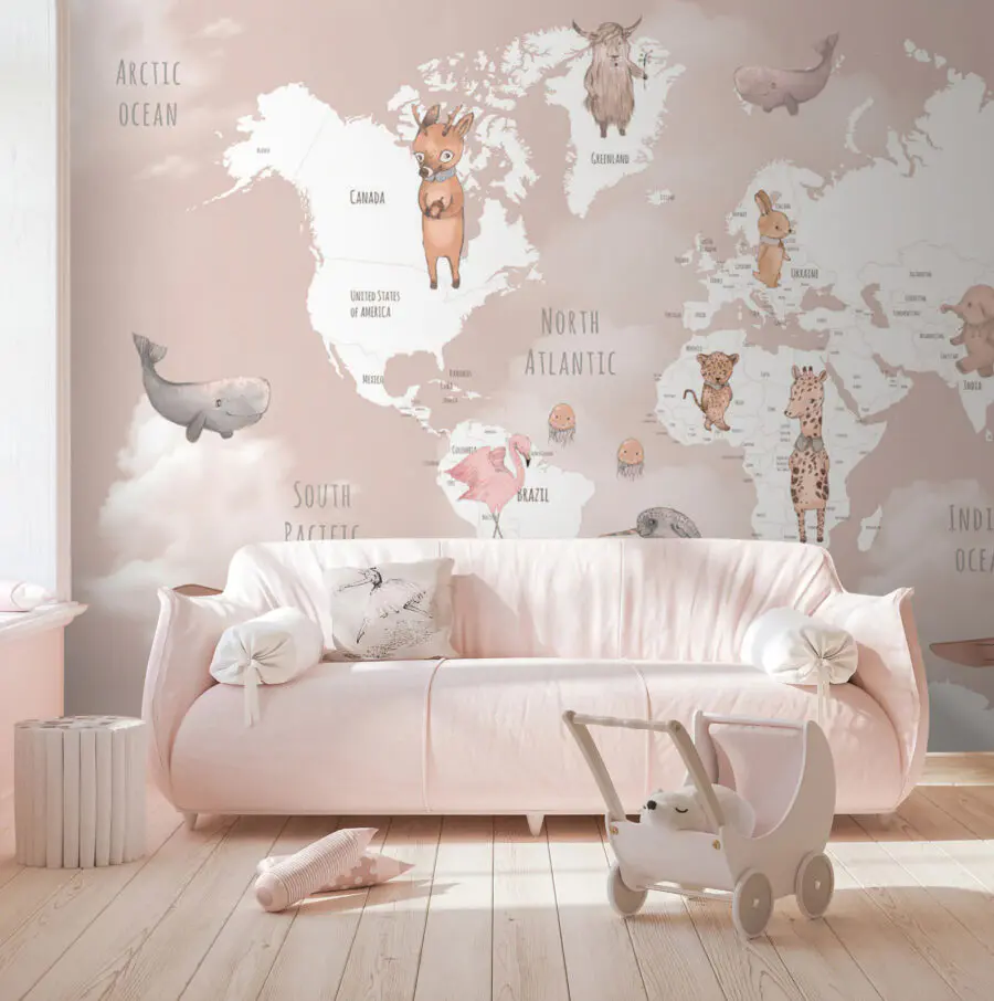 Het is superleuk voor kinderkamers, maar eerlijk gezegd, wie zou het niet geweldig vinden in een knusse leeshoek? De zachte tinten en vrolijke karakters zullen iedereen doen glimlachen. En hee, het zou zelfs wat wereldwijde nieuwsgierigheid kunnen opwekken. “Waar komt die schattige narwal vandaan, mam?” zul je horen, en zo begint een lesje aardrijkskunde. Klaar om wat vrolijkheid en eigenzinnigheid op je muren te sprenkelen?