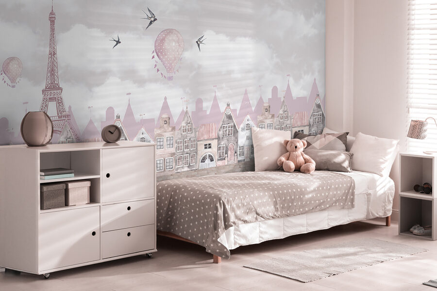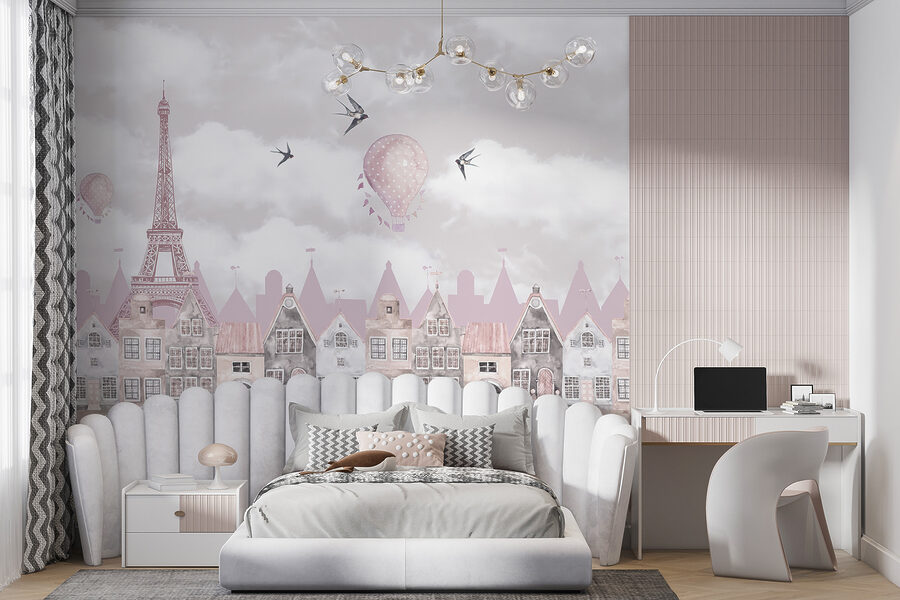 Stel je voor dat je een kamer binnenloopt en begroet wordt door de betoverende aanblik van vogels die door een grillige lucht zweven, luchtballonnen die zachtjes zweven en charmante daken die rechtstreeks uit een sprookje komen. Deze muurschildering “Bird Flying in the Sky” brengt die fantasie tot leven. Deze muurschildering is perfect voor de kinderkamer, prikkelt de fantasie en geeft de ruimte een dromerig gevoel. De zachte pastelkleuren en delicate details maken het niet zomaar een muurschildering, maar een verhaal waar je in kunt stappen. Er is iets rustgevends aan het kijken naar die vogeltjes, het is als een zacht briesje voor de ziel. En wie wil er nu geen vleugje magie op zijn muur? Deze muurschildering is een heerlijke mix van elegantie en speelsheid – ideaal voor het creëren van een gezellige, betoverende sfeer in de kamer van een dochter.