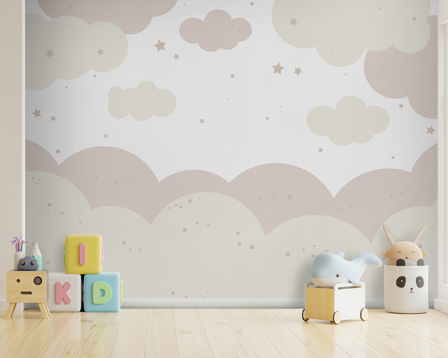 Stel je voor dat je een kamer binnenloopt en de sereniteit voelt van zweven op wolken. Dat is wat deze muurschildering van witte en roze wolken doet. Het is perfect voor een kinderkamer – of het nu een dromerige kinderkamer is of het toevluchtsoord van je kleine prinses. De pasteltinten zijn rustgevend, perfect voor rustige verhaaltjes voor het slapengaan of fantasierijke dagdromen.