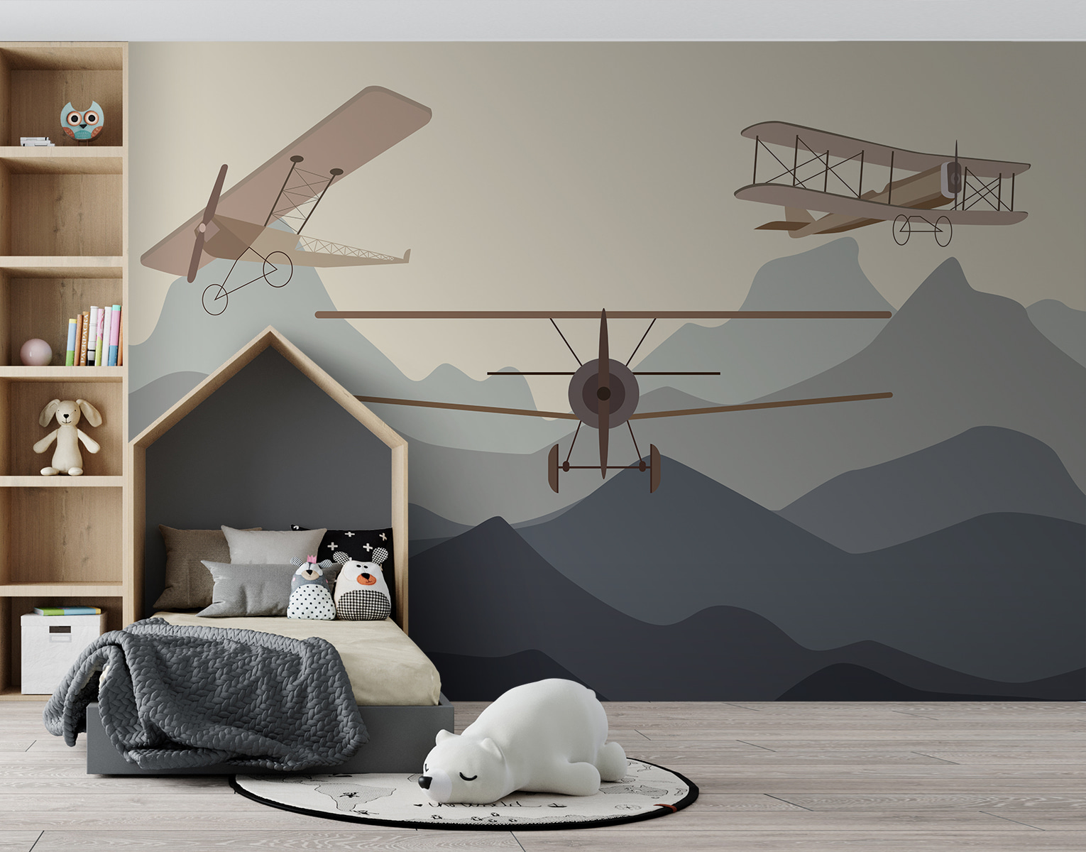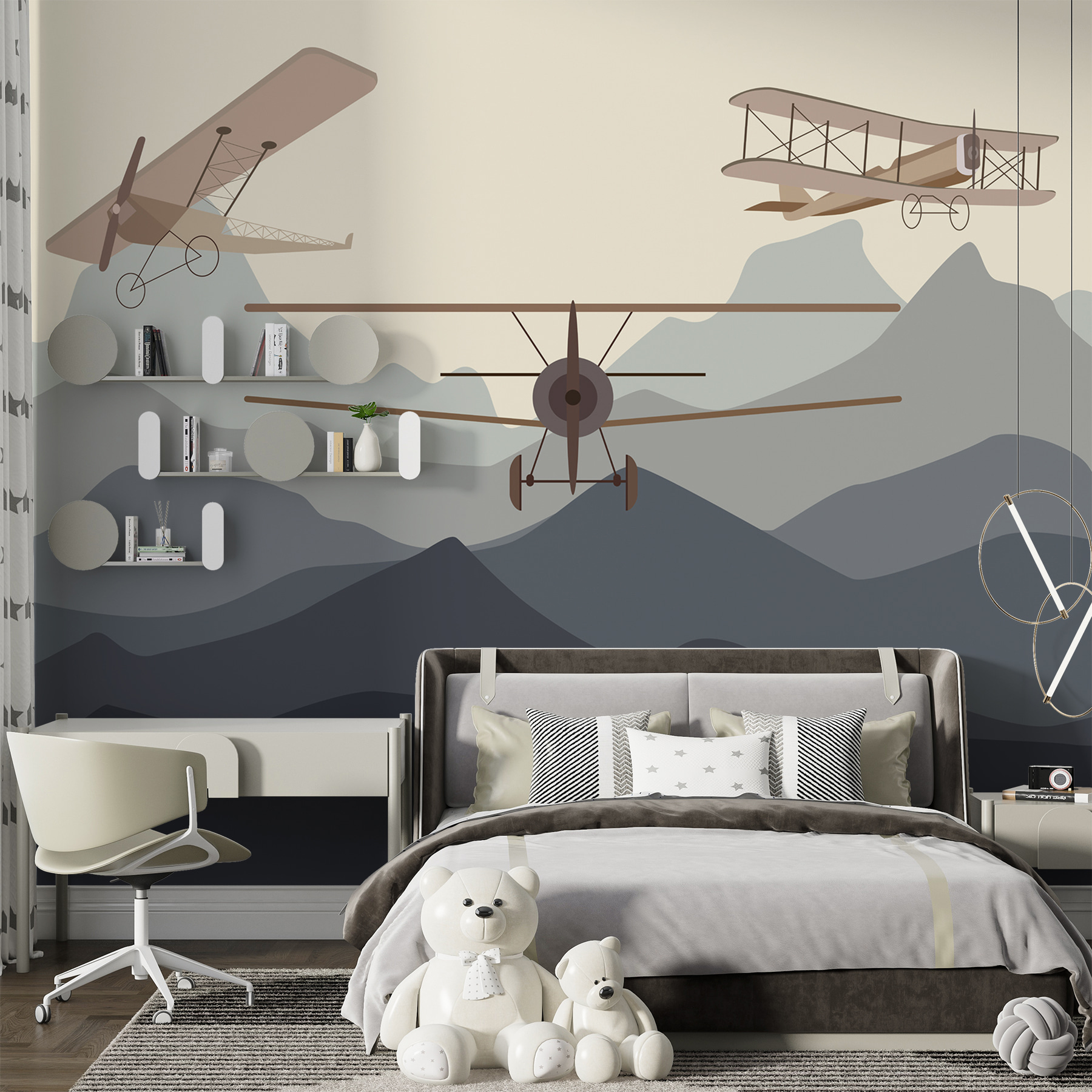 Kleed de kamer van je kind aan met een vleugje avontuur met deze muurschildering “Two Airplanes Flying in the Air”. Deze muurschildering is perfect om dromen over hoogvliegende avonturen te stimuleren, gewoon vanuit huis. De tweedekkers in retrostijl zweven door pastelkleuren luchten boven glooiende bergen en geven ze een grillige, tijdloze sfeer. Stel je de verhalen voor die je kleintjes zullen creëren, zwevend in hun verbeelding! Deze prachtige muurschildering past naadloos in kinderkamers, speelkamers of elke andere ruimte die een speelse, avontuurlijke geest nodig heeft. Dus maak je klaar voor verhaaltjes voor het slapengaan tegen deze charmante achtergrond – het is niet alleen decor, het is een lanceerplatform voor dromen!