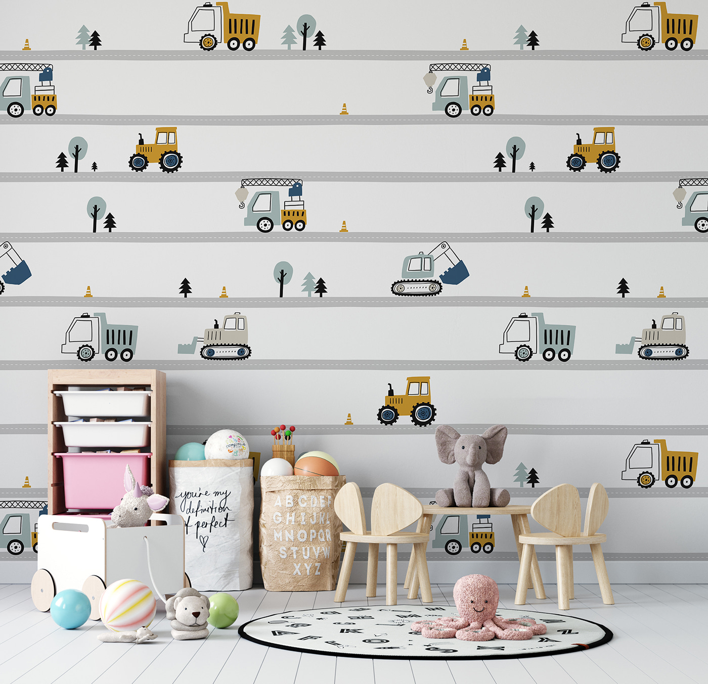 Wil je een speelse sfeer toevoegen aan de kamer van je kind? Zeg hallo tegen de “Muurschilderingen Gele tractor met zwarte wielen” – een heerlijke mix van charme en plezier! Perfect voor kinderen, vooral die kleintjes die geen genoeg kunnen krijgen van grote machines en tractoren. Deze muurschildering plakt niet alleen op de muur, maar verandert de ruimte in een mini-avonturenland waar de verbeelding het voor het zeggen heeft. Het levendige geel en klassieke zwart tegen een koele achtergrond laten de tractoren knallen en nodigen je uit om het gezoem van die grote wielen bijna te horen.