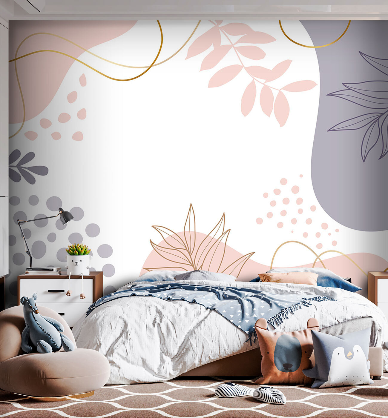 Verander elke kamer in een gezellige oase met deze charmante muurschildering met abstracte bladeren en zachte pastelvormen. Het is net alsof je een stukje natuur in huis haalt, zonder het vuil en de beestjes! Stel je een kinderspeelkamer voor of een gezellig hoekje waar de kleintjes groots kunnen dromen en hard kunnen spelen. De zachte kleuren zorgen voor een rustgevende sfeer die de creativiteit stimuleert zonder de zintuigen te overweldigen. Elk blad lijkt geheimen van het bos te fluisteren, en die vormen? Die voegen precies het juiste vleugje eigenzinnigheid toe. Perfect om een persoonlijke ruimte te creëren waar herinneringen tot bloei komen en verbeelding de vrije loop kan gaan!