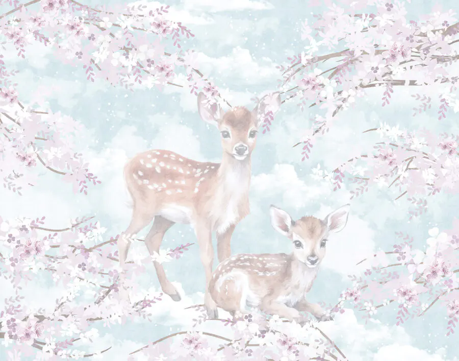 Stel je voor dat de kamer van je kind verandert in een dromerig bos met deze schattige fawns temidden van pastelbloesems. Het is magisch, toch? Deze muurschildering voelt aan als een zacht gefluister van de lente en brengt een zachte charme in elke ruimte. Deze muurschildering is perfect voor kinderkamers en speelzalen en je zult vaak glimlachen als je de lieflijkheid in je opneemt. De tere bloemen en zachte kleuren zijn als een slaapliedje, rustgevend en grillig. Het is niet zomaar een muurschildering; het is een verhaal op je muur, dat een serene ontsnapping biedt voor zowel kleintjes als volwassenen.