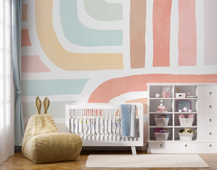 Stel je voor dat je kleintje elke ochtend wakker wordt met deze heerlijke mix – daar krijg je toch een glimlach van? Het is net een knuffel van een regenboog. Gooi er wat zacht speelgoed en donzige kussens bij en je hebt een dromerige, knusse ruimte die precies goed aanvoelt. Perfect om die vrolijke, speelse sfeer te creëren. Bovendien is het super trendy en voegt het die speciale “oomph” toe zonder overboord te gaan. Ideaal voor dochters, baby’s of, eerlijk gezegd, iedereen die houdt van een vleugje ingetogen kleur – deze muurschildering heeft persoonlijkheid in overvloed!