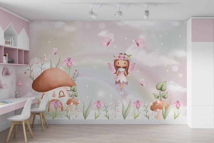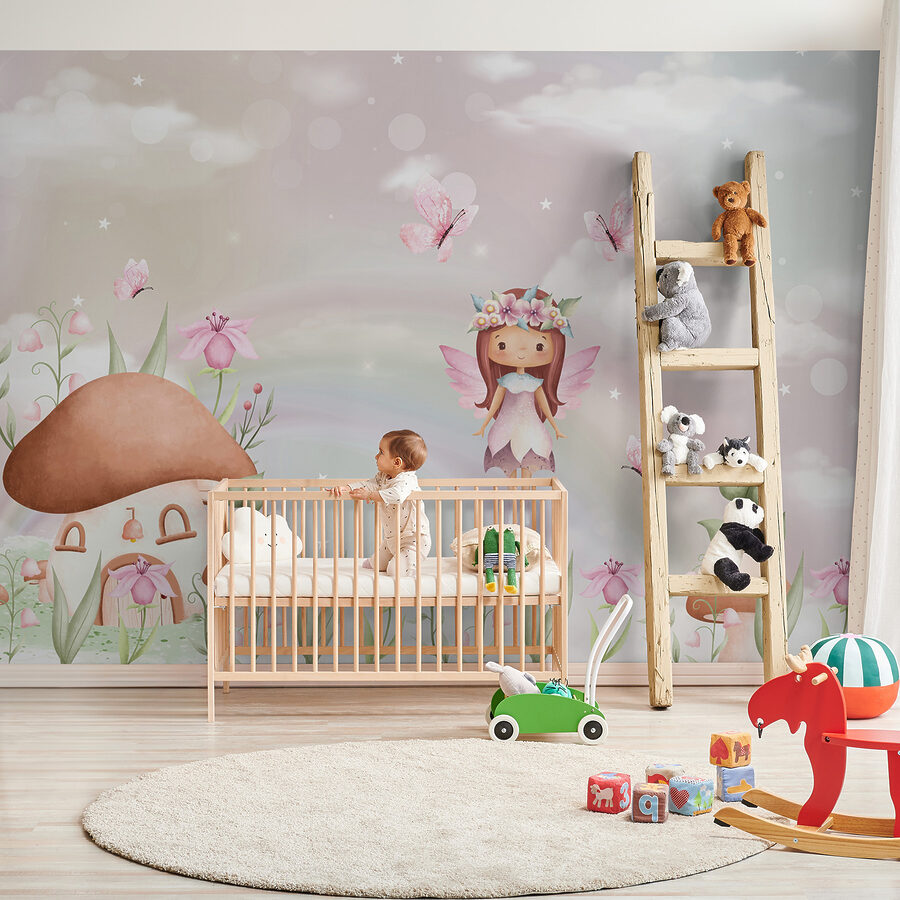 Transformeer de ruimte van een kleintje met deze betoverende muurschildering met een charmante fee die danst tussen bloemen en vlinders. Stel je voor: zonlicht dat naar binnen schijnt en zachte schaduwen werpt op speelse bloemblaadjes en een gezellig paddenstoelenhuisje dat de verbeelding prikkelt. Kinderen zullen dol zijn op verdwalen in dit magische tafereel en fantaseren over feeën en bosavonturen. Het is alsof je een sprookje aan de muur tot leven brengt – perfect voor nieuwsgierige geesten of misschien zelfs voor een gezellig leeshoekje. Wie zou er niet glimlachen als hij langs zo’n eigenaardigheid loopt? Laat de magie zich ontvouwen!