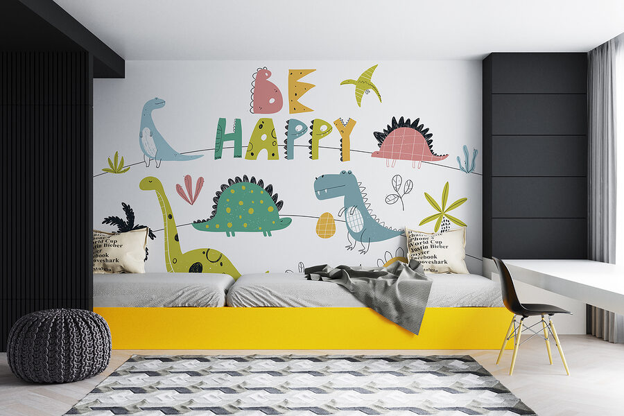 Deze prachtige muurschildering met de grillige titel “Cartoon Dinosaur Holding an Egg” is een must voor mensen die een vrolijke noot willen toevoegen aan een kinderkamer of speelse ruimte. Stel je een kudde vrolijke dino’s voor, allemaal uitgedost in pasteltinten, waarbij één beestje trots een ei vasthoudt. Het is net alsof je in een zaterdagochtend tekenfilm stapt! Kinderen zullen dol zijn op het levendige tafereel vol vriendelijke dinosaurussen en de hartverwarmende boodschap “Be Happy”. Het is leuk, levendig en brengt een beetje prehistorische vrolijkheid in je favoriete kamer. Perfect om jonge verbeelding aan te wakkeren of om een ruimte extra gezellig en grillig te maken.