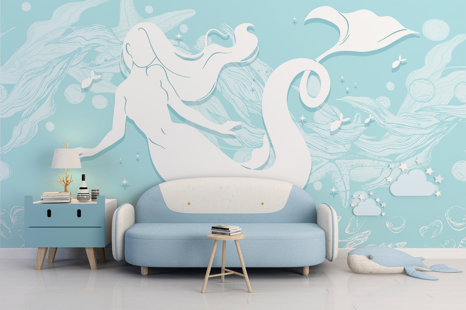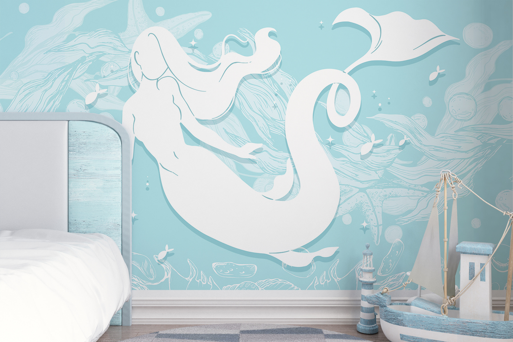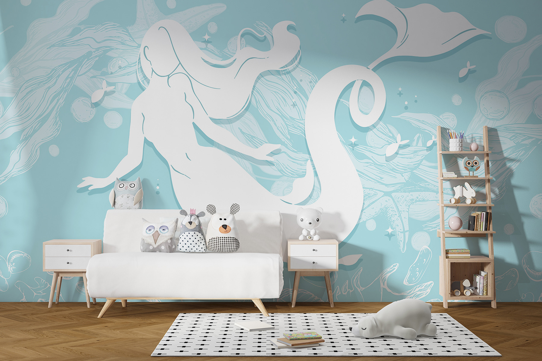 Stel je voor dat je de kamer van je kleintje omtovert in een dromerig onderzees avontuur met deze betoverende “Muurschildering w01316”. Perfect voor elk meisje dat droomt van oceanen en zeemeerminnen, voegt deze muurschildering een grillig tintje toe aan haar kamer. Met zachte oceaanblauwtinten en een sierlijk silhouet van een zeemeermin voelt het alsof ze in een sprookje stapt telkens als ze de kamer binnenkomt. Het is niet alleen decor – het is een verhaal dat wacht om beleefd te worden. Stel je een verhaaltje voor onder de golven… Glimlachen gegarandeerd! Leuk voor dochters, maar past ook bij elke jonge vrouw met een speels hart en gevoel voor avontuur. Duik in de magie en laat je verbeelding de vrije loop!