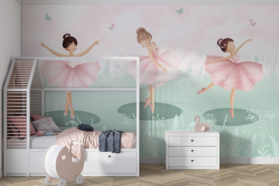 Transformeer je ruimte met deze charmante muurschildering met een verrukkelijke groep dansende meisjes in een zonovergoten veld. Het is net een scène rechtstreeks uit een grillige dagdroom, waar gelach de lucht vult en vlinders rondfladderen. Stel je kleine voetjes voor die ronddraaien en wervelen in die zachtroze tutu’s, die een gevoel van vreugde en zorgeloosheid oproepen. Deze muurschildering is perfect voor de kamer van een kleintje en moedigt creativiteit en verbeelding aan. Stel je de glimlach en de verhalen voor die hier zouden kunnen ontstaan, met kleine dansers die hun eigen avonturen van plezier en vriendschap delen. Een vleugje geluk voor elke muur!