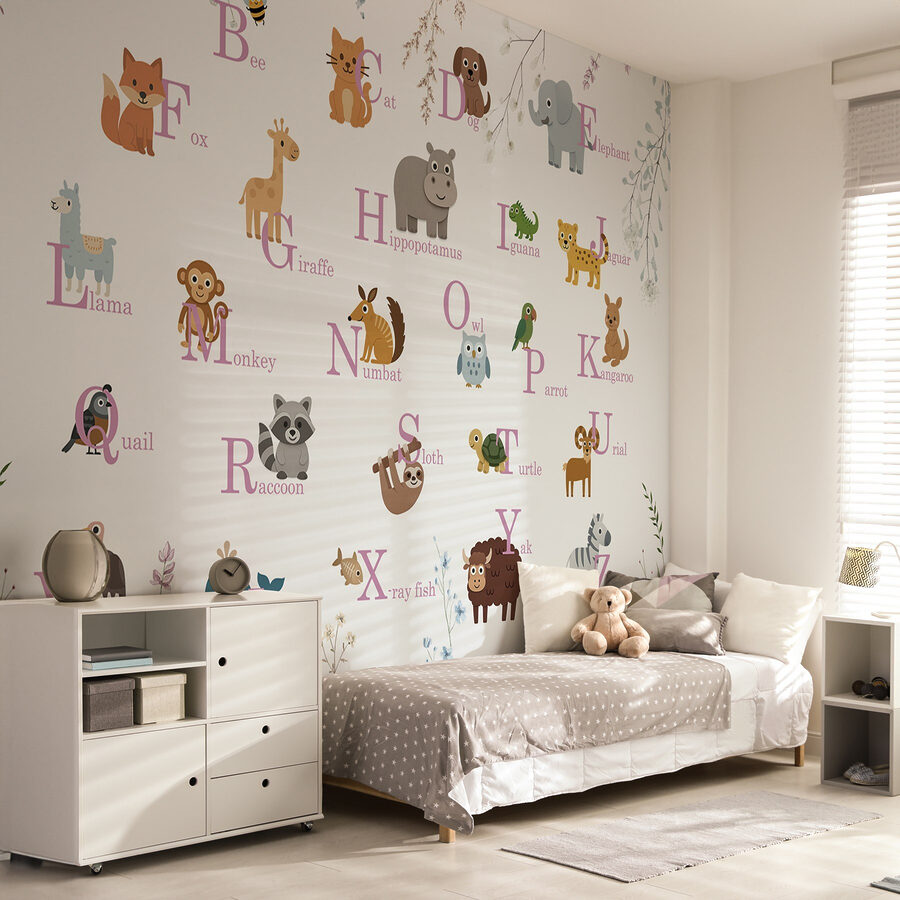 Tover een kinderkamer om in een grillige jungle met deze prachtige muurschildering met schattige dieren en speelse letters. Stel je een kamer voor waar elke hoek barst van het karakter en vreugde en nieuwsgierigheid opwekt. Kleintjes kunnen hun ABC leren samen met een levendige alligator, een charmante kat of een ondeugende aap. Elk wezen brengt een gevoel van avontuur met zich mee, waardoor het perfect is om de verbeelding aan te moedigen. Ouders moeten misschien wel glimlachen om de schattige details als ze verhaaltjes lezen voor het slapengaan. Dit is niet alleen decoratie; het is een leuke ervaring voor iedereen!