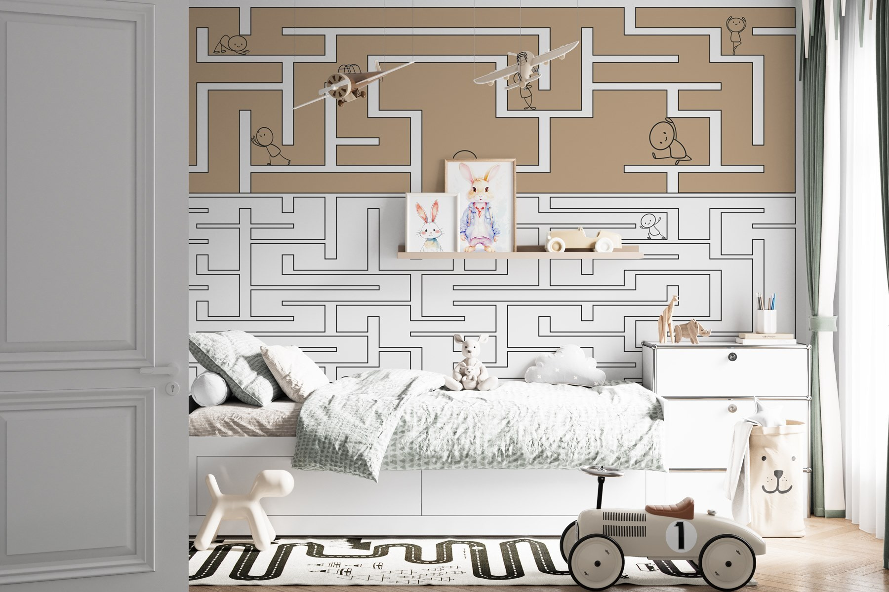 Breng een speelse sfeer in elke ruimte met deze charmante muurschildering met een doolhofscène. Stel je kleine figuurtjes voor die door kronkels en bochten dwalen, elk op hun eigen mini-avontuur. Perfect voor kinderen (en jong van hart), het stimuleert creativiteit en verbeelding. Stel je voor: een kind dat opgewonden naar de muurschildering wijst, verloren in zijn zoektocht naar de uitgang. De kleuren zijn warm en uitnodigend en geven een gezellige sfeer aan een kamer. Het is niet alleen decor; het is een speeltuin voor de geest! Perfect voor een kinderkamer of speelkamer, het zal kleine ontdekkingsreizigers urenlang vermaken. Laat de pret beginnen!