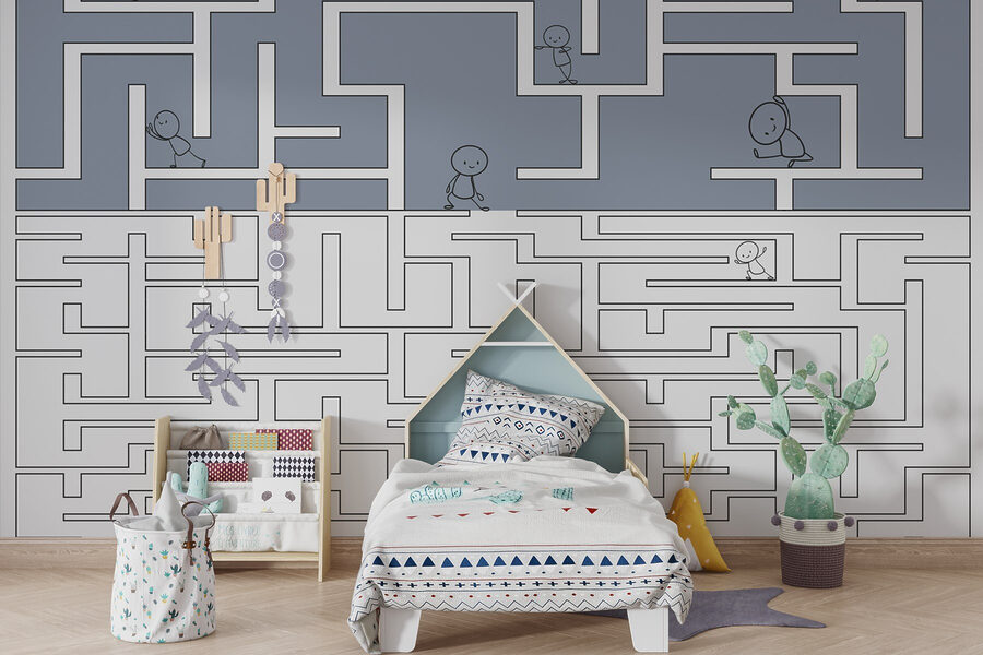 Transformeer je ruimte met de grillige charme van deze muurschildering met een prachtig doolhof en vriendelijke figuren die door de kronkels navigeren. Stel je voor dat kinderen giechelend hun eigen avontuur ontdekken op de muur! Het is alsof je een sprookjesboek tot leven brengt, wat de verbeelding aanwakkert tijdens het spelen of gezellige leesmiddagen. De zachte kleuren creëren een rustgevende sfeer, perfect voor slaapkamers of speelkamers. Bovendien is het een leuk begin van een praatje voor bezoekers die het misschien leuk vinden om te proberen het doolhof zelf op te lossen. Wie wist dat decoratie zo leuk kon zijn?