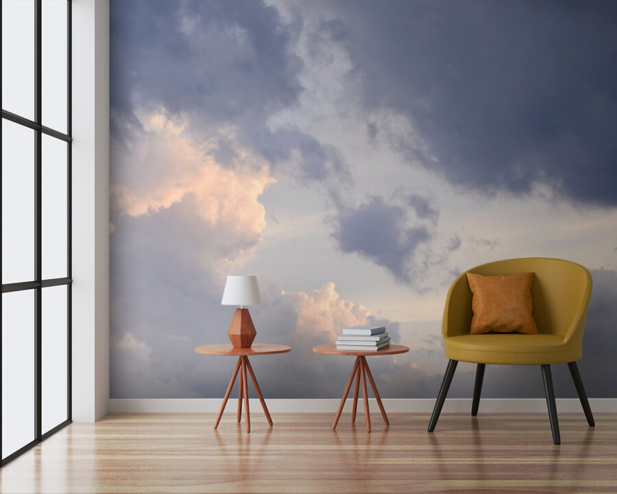 Met deze muurschildering “Cloud in the Sky” haal je een stukje dromerige hemel in huis. Stel je voor dat je in je favoriete stoel ligt en omhoog staart naar deze pluizige wolken – het is net alsof je buiten bent, zonder de insecten en het weer! De zachte, gedempte kleuren en het lichte spel zorgen ervoor dat elke kamer ruimtelijker en serener aanvoelt. Perfect voor zonnige, rustige zondagochtenden of om een drukke ruimte een rustig tintje te geven. Of het nu een gezellig leeshoekje is of een drukke woonkamer, deze muurschildering creëert een rustgevende achtergrond – elke blik geeft je een meer ontspannen en geïnspireerd gevoel. Bovendien is het een fantastische gespreksstarter! Je ruimte krijgt die frisse, luchtige sfeer waar iedereen stiekem naar verlangt.
