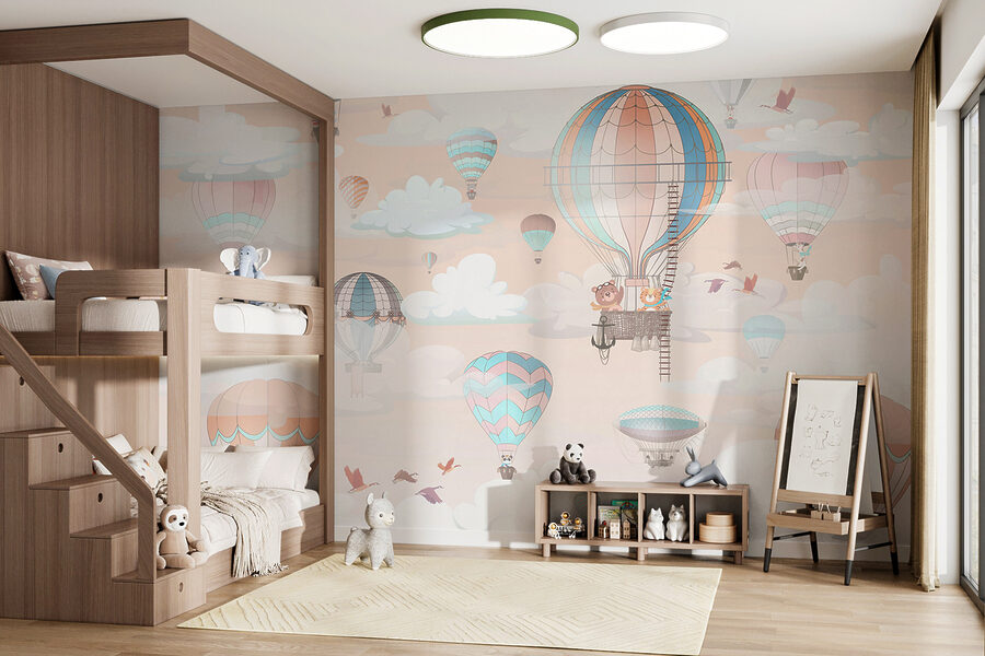 Deze muurschildering “Hot Air Balloon in the Sky” is alsof je in een dagdroom stapt. Stel je voor dat je kleintjes elke ochtend wakker worden met een hemel vol grillige heteluchtballonnen, zwevend door pluizige wolken. Het is een charmante mix van zachte pastelkleuren – perfect om een serene, vrolijke ruimte te creëren. Denk aan verhaaltjes voor het slapengaan in verre landen of speelse middagen met vrienden, geïnspireerd door dit avontuur in de lucht. Het is niet alleen een muurschildering; het is een hele sfeer – licht, speels en absoluut magisch. Ideaal voor kinderkamers en kinderkamers, voor een vleugje plezier en eindeloze verbeelding.