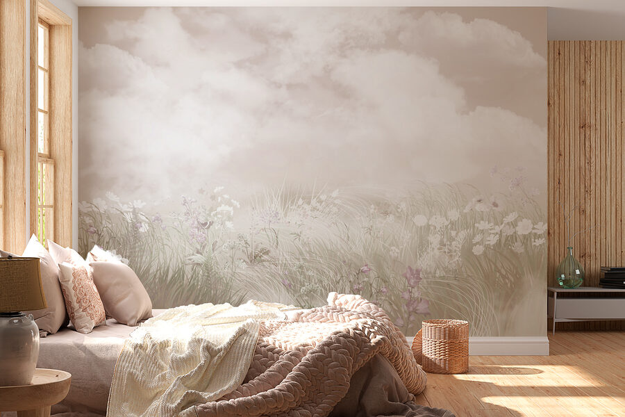 Stel je dit voor: een luie middag waar de zorgen van de dag gewoon wegzweven. Dat is waar “Field of Grass and Flowers” over gaat. Deze muurschildering brengt de kalmte van de natuur naar je kamer. De zachte wolken en delicate bloemen creëren een dromerige ontsnapping – perfect voor die momenten waarop je een mentaal uitje nodig hebt. Het is alsof je je eigen geheime weide binnenshuis hebt. Bovendien combineert het prachtig met binnenvallend daglicht, waardoor elke kamer levendig aanvoelt. Ideaal voor de natuurliefhebber die een beetje van de buitenwereld binnen wil hebben.