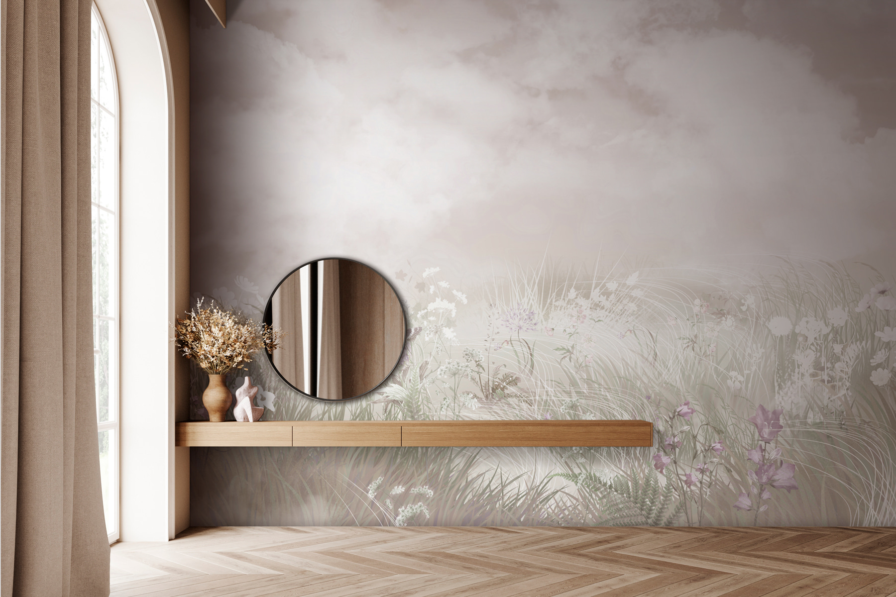 Stel je dit voor: een luie middag waar de zorgen van de dag gewoon wegzweven. Dat is waar “Field of Grass and Flowers” over gaat. Deze muurschildering brengt de kalmte van de natuur naar je kamer. De zachte wolken en delicate bloemen creëren een dromerige ontsnapping – perfect voor die momenten waarop je een mentaal uitje nodig hebt. Het is alsof je je eigen geheime weide binnenshuis hebt. Bovendien combineert het prachtig met binnenvallend daglicht, waardoor elke kamer levendig aanvoelt. Ideaal voor de natuurliefhebber die een beetje van de buitenwereld binnen wil hebben.