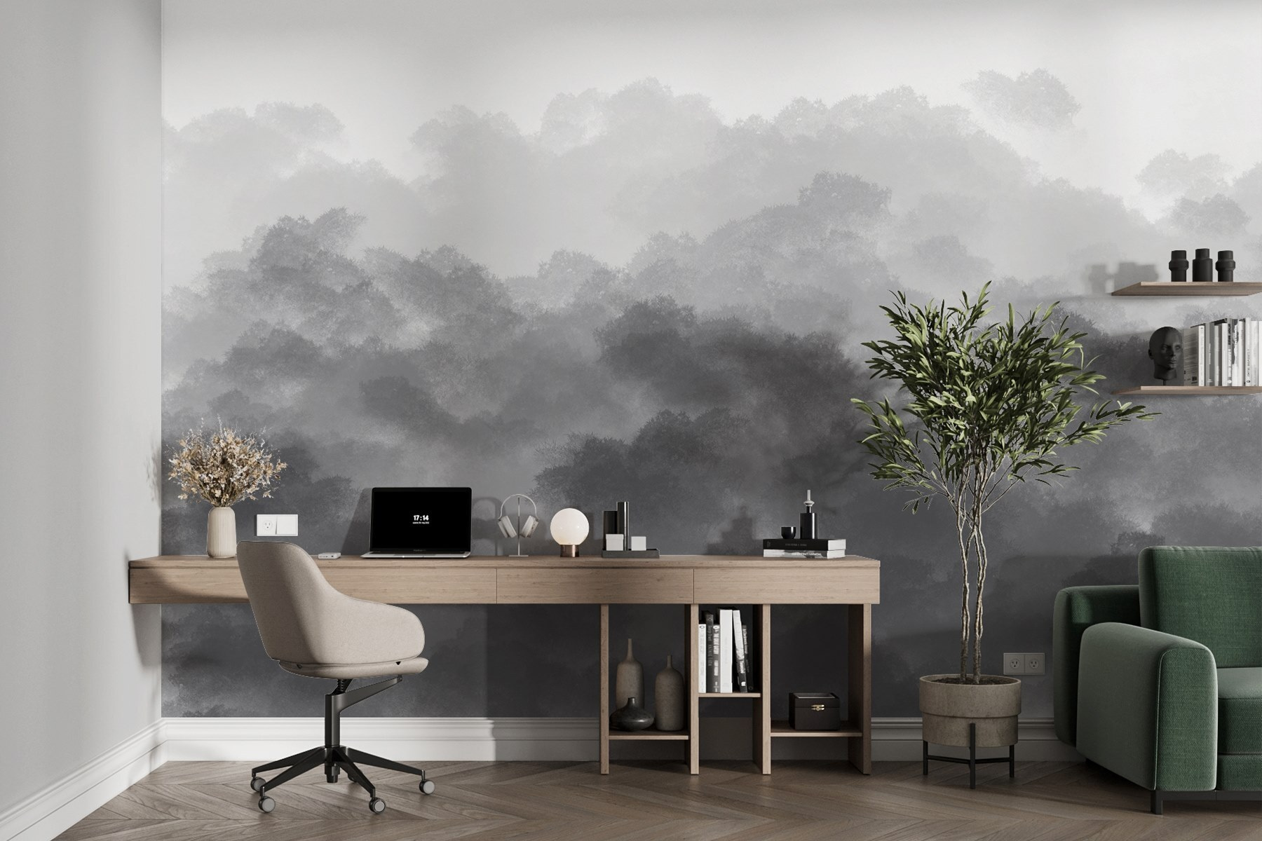 Stel je voor dat je in een gezellige stoel wegzakt met een kopje thee of misschien iets sterkers. Je staart naar deze wolkenmuurschildering en opeens voelt het alsof je kamer in de lucht zweeft. Dromerig, toch? Perfect voor die “ik heb even een momentje nodig”-momenten. Het zwart-wit geeft het die kalme, kunstzinnige vibe, moeiteloos chic. Ideaal voor dagdromers die een vleugje hemel willen zonder, je weet wel, het huis te verlaten. Je vraagt je af: waarom zou je naar een gewone muur staren als je een stukje van de hemel kunt hebben? Laat je gedachten net zo zweven als deze wolken.