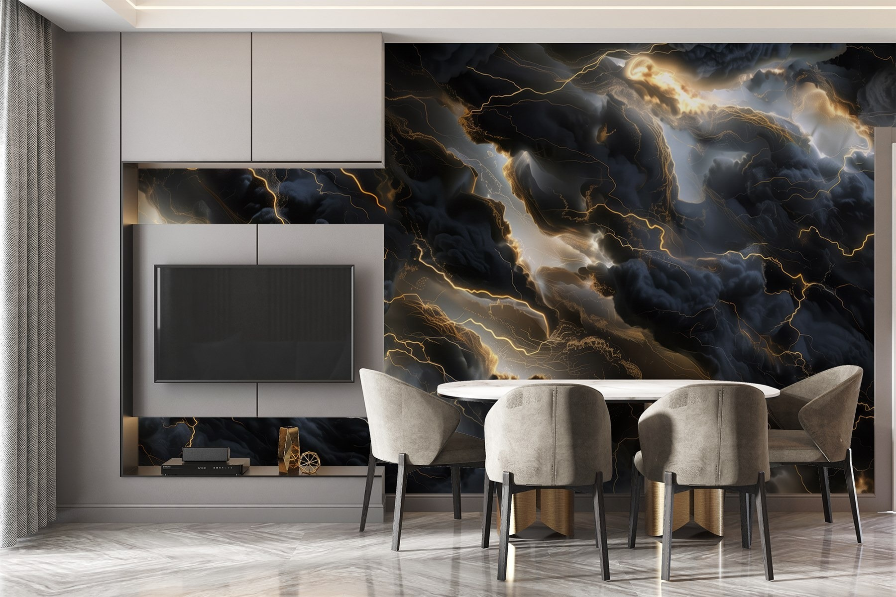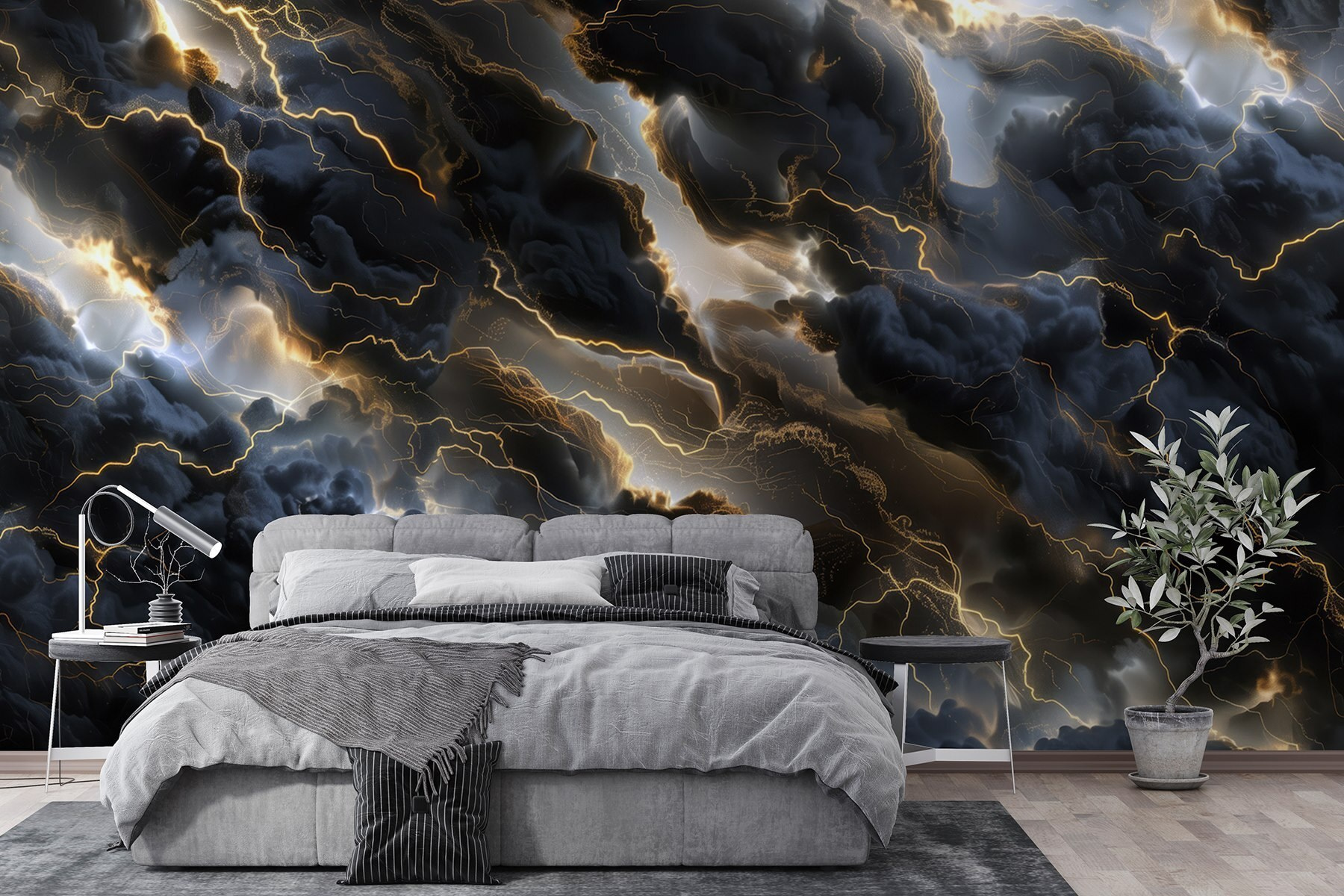 Transformeer je ruimte met deze prachtige muurschildering, “Zwarte wolken met bliksem”. Het is net alsof je een dramatische onweersbui in huis haalt, zonder doorweekt tapijt. Stel je voor: je nipt van je koffie, de lucht is een beetje somber buiten, maar binnen schijnt de schittering van de bliksem door de wolken en voegt een vleugje opwinding toe. Het is niet zomaar een muur; het is een statement. Elke blik kan verbeelding en gesprek opwekken. Perfect voor woonkamers of zelfs een knusse leeshoek – je hoeft alleen maar te hopen dat je boek niet wordt meegesleurd door de stormachtige vibes! Breng die unieke flair mee naar huis en zie je muren tot leven komen.
