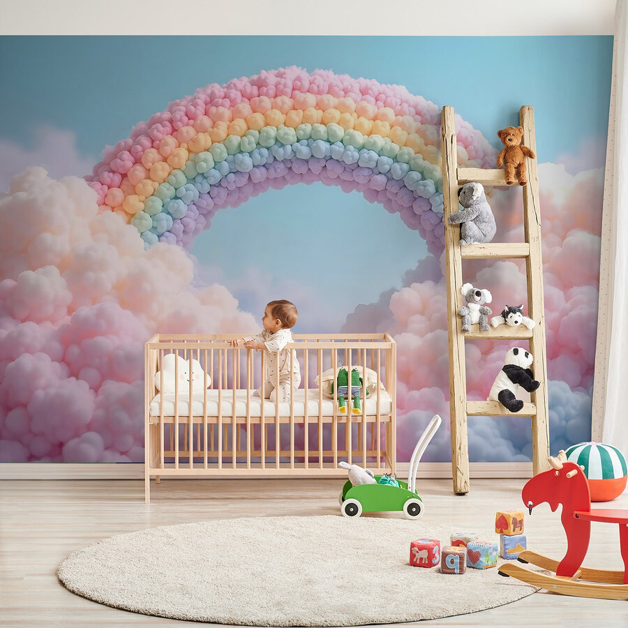 Transformeer elke ruimte met deze prachtige “Muurschildering Regenboog van Wolken”. Stel je voor dat je een kamer binnenstapt waar pluizige wolken en pastelkleurige regenbogen een dromerige sfeer brengen. Het is als een zachte knuffel voor je muren! Perfect om een kinderkamer, speelkamer of zelfs een gezellig leeshoekje op te fleuren. De zachte tinten nodigen uit tot een gevoel van rust, waardoor het moeilijk wordt om niet te glimlachen. Stel je een regenachtige dag voor die omslaat in zonnig en waar je met één blik al vrolijk van wordt. Het is grillig maar rustgevend – precies wat elk huis nodig heeft. Verhoog je inrichting met een vleugje fantasievolle vrolijkheid!