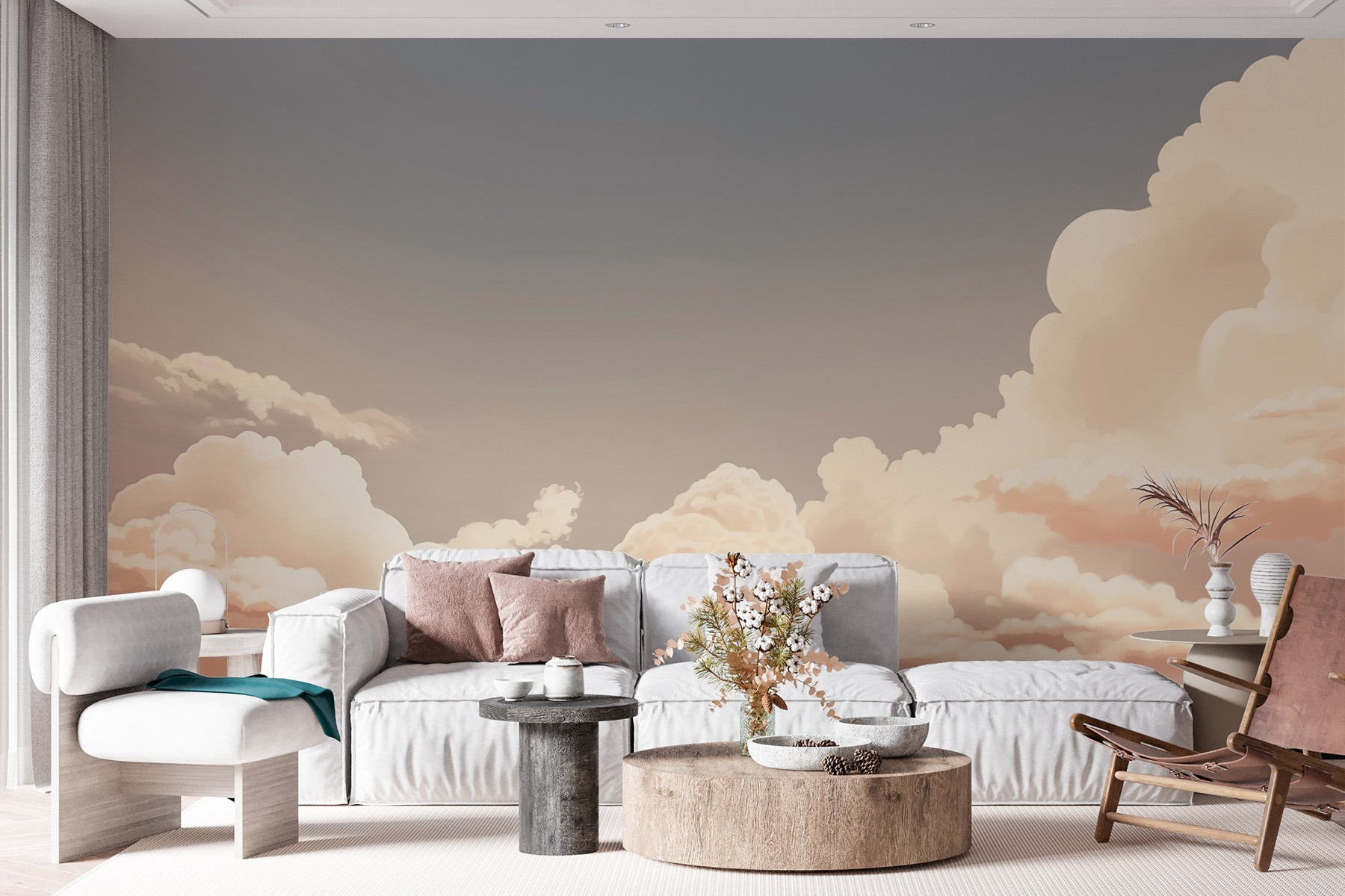 Breng een vleugje rust in elke ruimte met de charmante muurschildering ‘Cloudy Sky with a Sun’. Stel je voor dat je wakker wordt met dromerige wolken die zachtjes boven je hoofd zweven en het warme zonlicht dat door de wolken schijnt – perfect voor gezellige ochtenden. Deze muurschildering is niet alleen decoratie, maar ook een opkikker voor je humeur! Het zachte kleurenpalet creëert een rustgevende sfeer die ideaal is om te ontspannen of in gedachten te verzinken. Stel je dit eens voor op een accentmuur in een slaapkamer, of misschien in een rustige leeshoek. Het is alsof je een stukje lucht in huis hebt, maar dan zonder de vogelpoep! Gewoon een zalige, luchtige ontsnapping om elke dag op te fleuren.