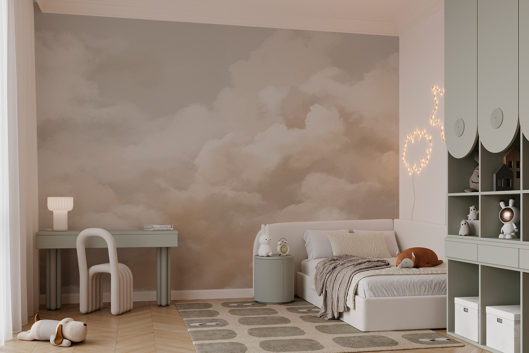 Stel je voor dat je een kamer binnenloopt die aanvoelt als een zachte knuffel van de lucht – dat is precies wat deze muurschildering ‘Cloudy Sky with a Few Clouds’ doet! Met zijn zachte pasteltinten en donzige wolken lijkt het alsof je een rustige, dromerige dag binnenshuis haalt. Perfect voor ruimtes waar ontspanning centraal staat, zoals een gezellig leeshoekje of een serene slaapkamer. Stel je voor dat je thee drinkt, gewikkeld in een deken, terwijl je naar deze lucht kijkt in plaats van naar het plafond. En het beste? Je kunt hem gewoon afpellen en opplakken! Dus als wolken morgen niet je ding zijn, geen zorgen. Verander hem net zo gemakkelijk als je van gedachten verandert!