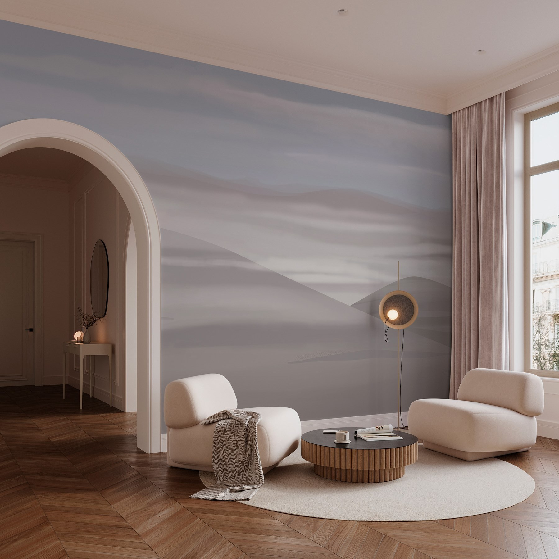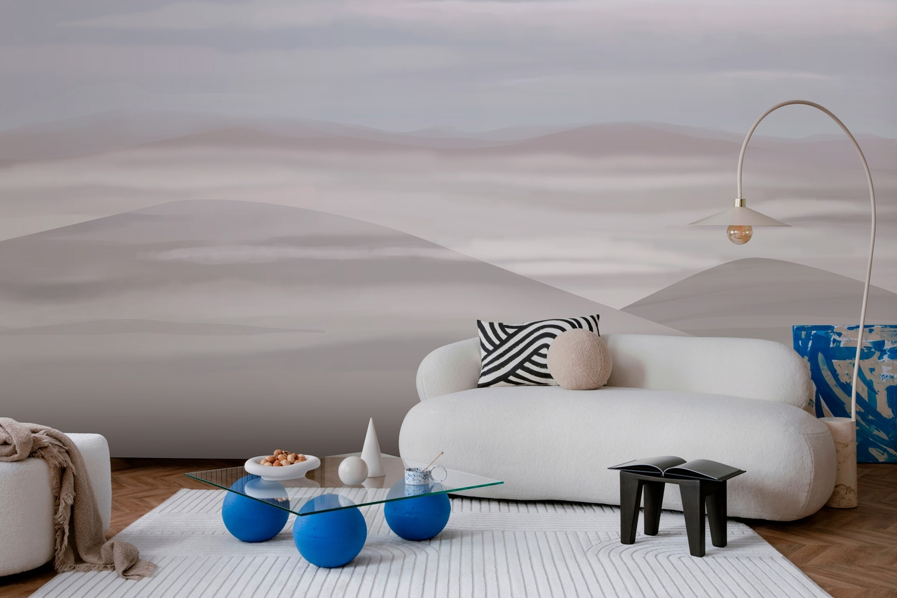 Transformeer elke kamer met deze dromerige muurschildering van glooiende heuvels en zachte wolken. Stel je voor dat je wegzakt in je bank, omringd door een sereen landschap dat rust uitstraalt. Het is net een mini-uitstapje zonder het gedoe met reizen! De subtiele tinten nodigen uit tot ontspanning, waardoor het perfect is voor een gezellige leeshoek of zelfs een creatieve werkplek. Vrienden kunnen binnenwandelen en zich een beetje lichter voelen, zich afvragend of ze net een rustig schilderij zijn binnengestapt. Deze muurschildering decoreert niet alleen maar kalmeert ook de geest, dus leun achterover en laat die bergvibes maar stromen!