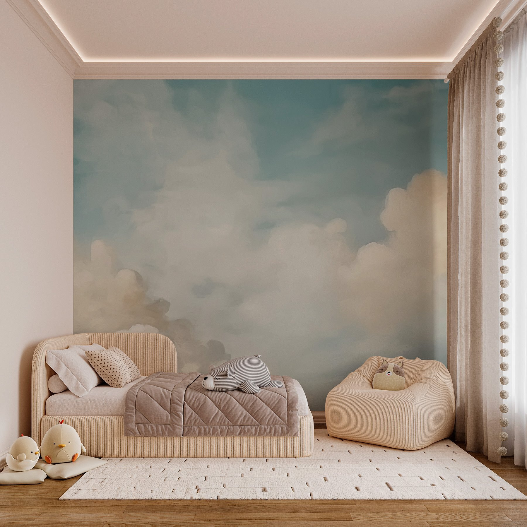 Transformeer je ruimte met deze prachtige muurschildering “Clouds in the Sky”. Zie het voor je: zachte, pluizige wolken die lui langs een helderblauwe hemel drijven. Het is alsof je een stukje van de rustige buitenlucht naar je kamer brengt. Deze muurschildering is ideaal voor een gezellig leeshoekje of een levendige speelkamer en nodigt uit tot dagdromen en eindeloze avonturen. Stel je voor dat de kinderen naar boven staren en vormen bedenken, of dat jij gewoon geniet van een rustig moment met een kopje koffie. Er is een balans tussen kalmte en eigenaardigheid, waardoor het perfect is voor iedereen die een beetje magie in zijn leven wil. Je kunt niet anders dan glimlachen als je er een glimp van opvangt! Perfect gezellig, moeiteloos charmant – wat is er niet leuk aan?