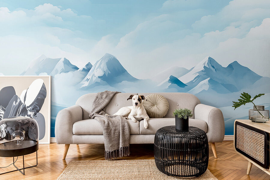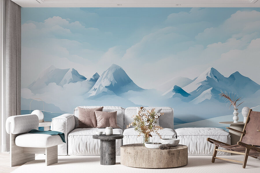 De zachte blauwe en witte tinten creëren een ontspannen sfeer, perfect om tot rust te komen na een drukke dag. Vrienden zullen zich misschien zelfs afvragen of je een raam naar een winterwonderland hebt geïnstalleerd. Wie zei dat je de bergen niet naar huis kunt halen, had duidelijk geen muurschildering als deze in gedachten. Duik in de sereniteit met dit kunstwerk dat de rust van de natuur in elke blik vastlegt.