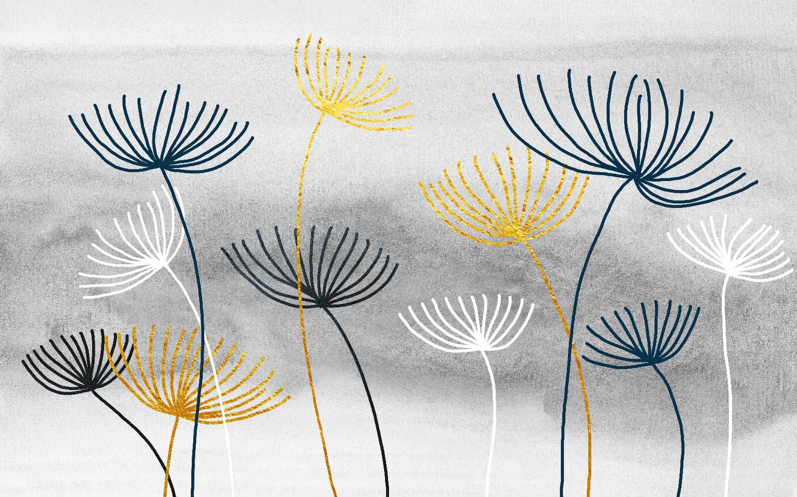Fleur elke kamer op met deze prachtige muurschildering met speelse gele en blauwe bloemen. Het is net alsof je een stukje natuur in je woonkamer hebt. Stel je voor: je vrienden komen binnen en hun ogen stralen van verrukking bij het zien van die vrolijke bloemen die de muren sieren. Het ontwerp is eenvoudig maar opvallend en verandert een saaie ruimte moeiteloos in een levendige oase.