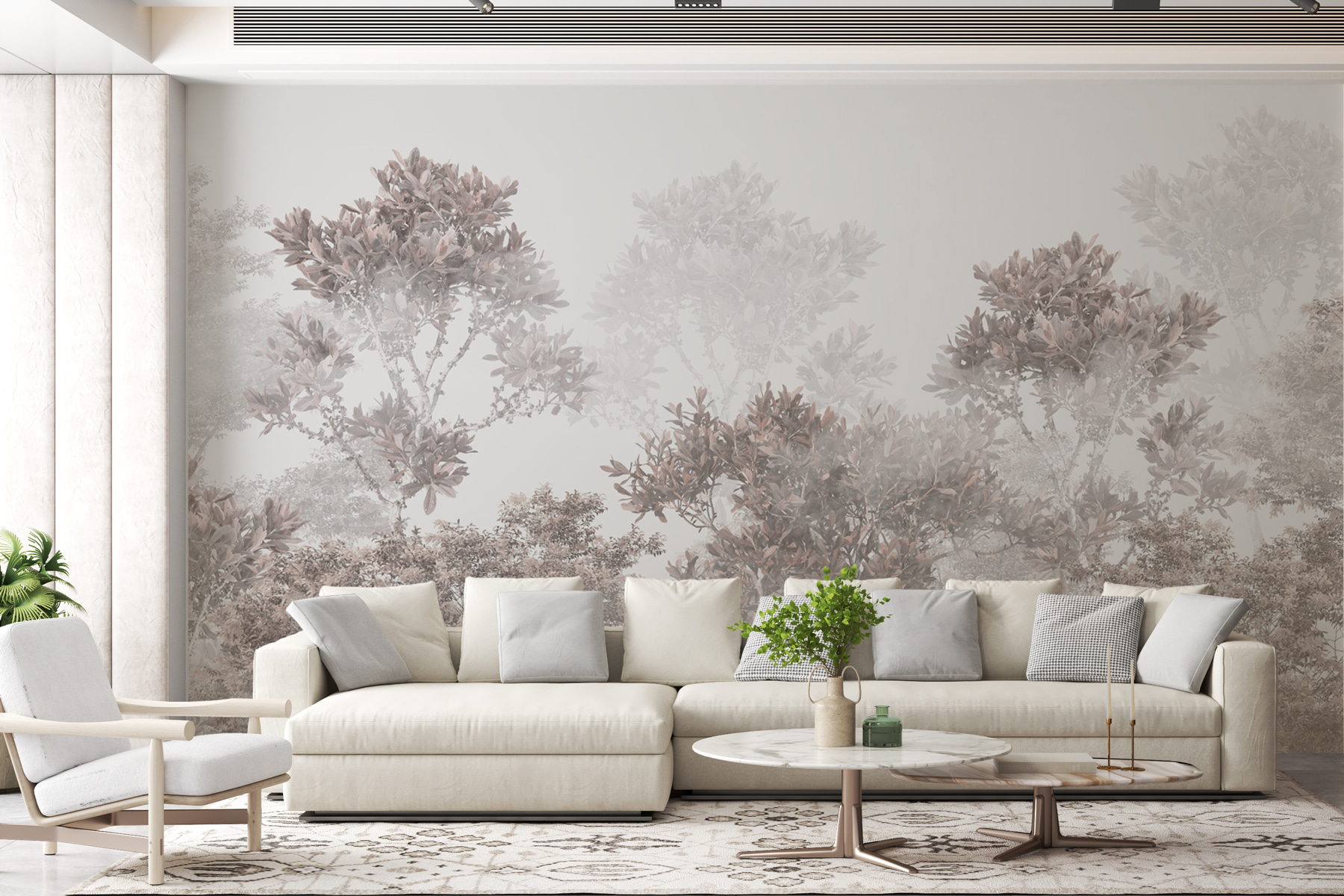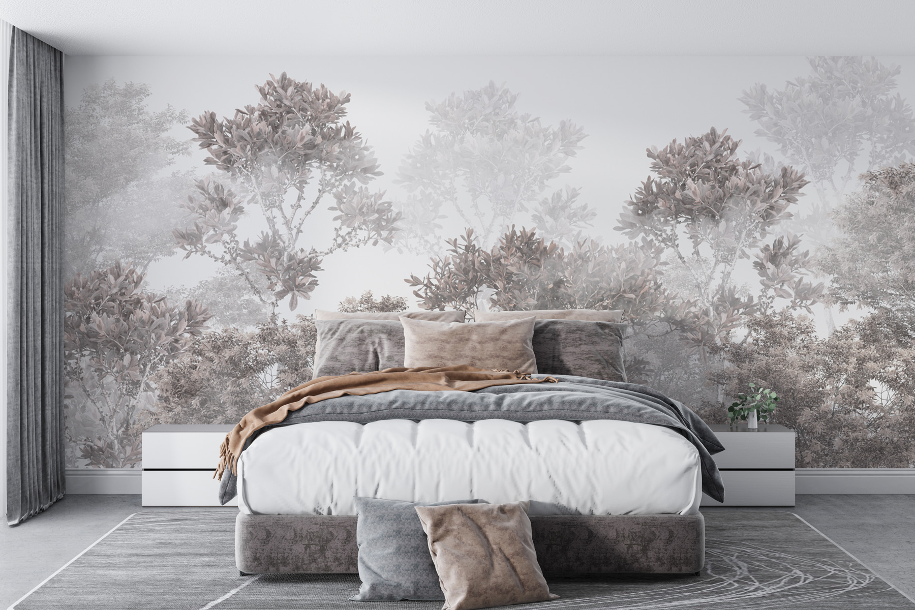 Stel je voor dat je elke dag wakker wordt met de rustgevende schoonheid van een mistig bos, gewoon in je eigen huis. Deze “Misty Forest” muurschildering neemt je mee naar een wereld waar gedempte kleuren zich vermengen met ochtendmist – het is alsof je je eigen geheime ontsnapping uit het bos hebt. Het ontwerp is zacht voor de ogen, perfect om een rustgevende sfeer te creëren in elke kamer. De dromerige, zachte grijzen en stoffige bruintinten geven je bijna het gevoel dat je frisse, frisse lucht inademt.