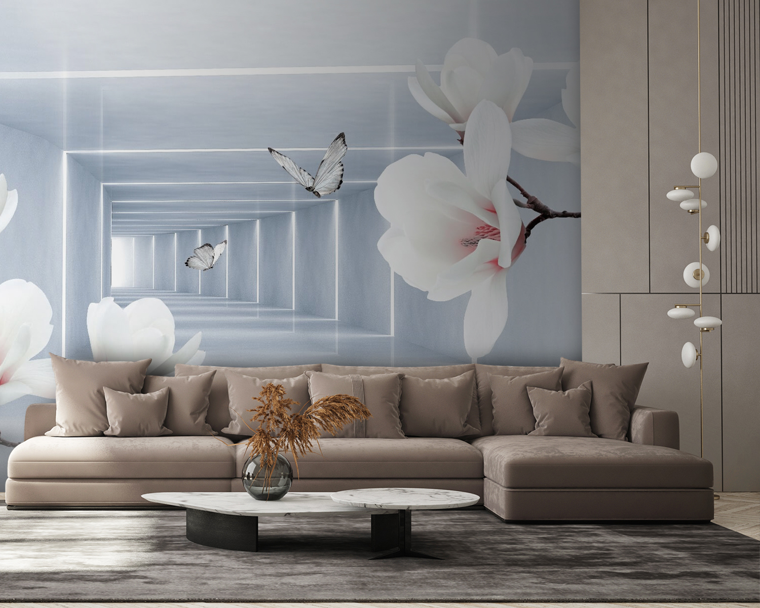 Transformeer elke ruimte met de betoverende “Wall Murals White Flowers and Butterflies”. Deze schoonheid brengt een gevoel van rust met zijn delicate bloemen en sierlijke vlinders, perfect voor een woonkamer of gezellige leeshoek. Stel je voor dat je thee drinkt terwijl je naar deze elegante bloemen kijkt – ze lijken bijna de geheimen van de natuur te fluisteren. De zachte kleuren creëren een luchtige sfeer, waardoor kamers groter en lichter aanvoelen. Perfect voor wie elke dag even wil ontsnappen naar een serene wereld. Maar wees gewaarschuwd: je zou wel eens vaker dan normaal kunnen gaan dagdromen!
