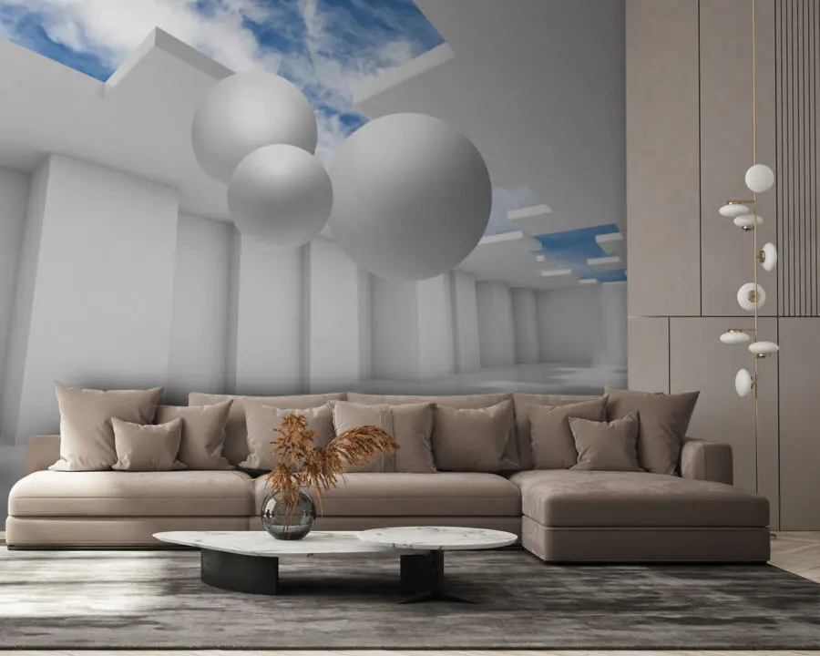 Step into a world that feels like a dream with the “Wall Murals White Room with White Walls and White Balls.” This mural captures that blissful, airy vibe—like walking into a cloud on a perfect day. Imagine sipping your morning coffee while gazing at those playful spheres floating effortlessly above. It’s like the room is saying, “Relax; there’s nothing to worry about.”