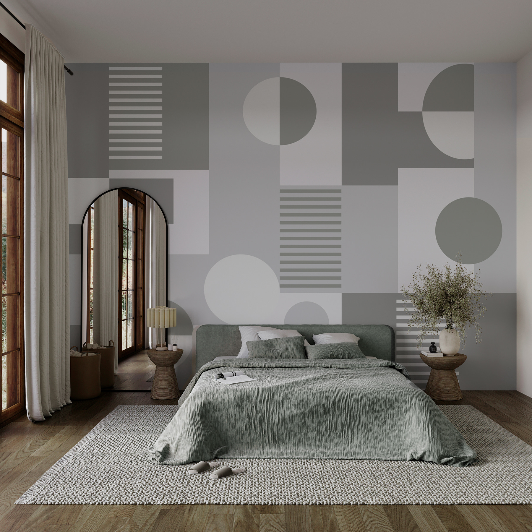 De speelse mix van vormen voelt modern en toch tijdloos aan en brengt moeiteloos een vleugje elegantie. Het is alsof je je muren een gezellige trui geeft-niets te opzichtig, net genoeg om je te laten glimlachen telkens als je er langs loopt. Of het nu in de woonkamer is of in een knus hoekje om te lezen, deze muurschildering fluistert stijl met een zacht duwtje. Perfect voor wie houdt van de subtiele schoonheid van het alledaagse!