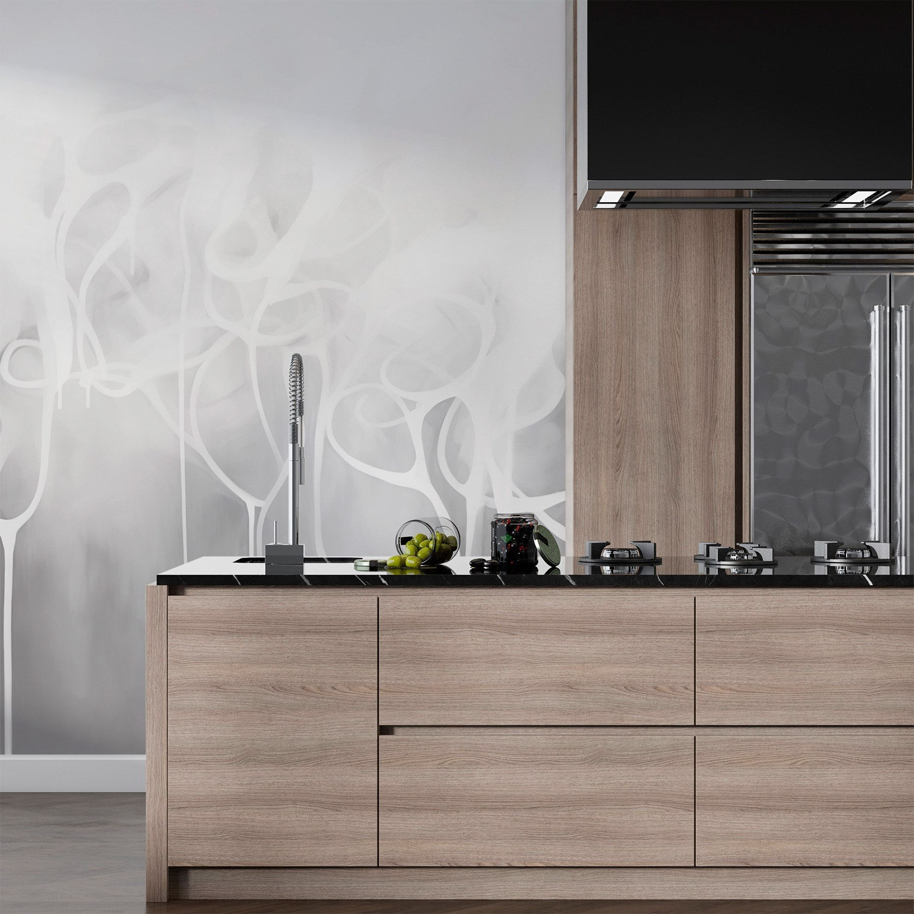 Transformeer elke ruimte met deze fascinerende muurschildering met witte verf die uit een wolk lijkt te druipen. Stel je voor dat je een kamer binnenstapt waar de hemel je muren ontmoet – hoe cool is dat? De zachte mix van kleuren creëert een rustgevende achtergrond, perfect voor een gezellig hoekje of een chique woonkamer. Het is alsof je een stukje creativiteit in huis haalt. Misschien vragen vrienden wel of de muurschildering de nieuwe behangtrend is waar ze nog niet van gehoord hebben. Elke blik kan een kleine dagdroom opwekken, waardoor het leven net iets grilliger aanvoelt. Perfect voor wie houdt van een minimalistische sfeer met een twist, voegt deze muurschildering karakter toe zonder al te overdreven te zijn.