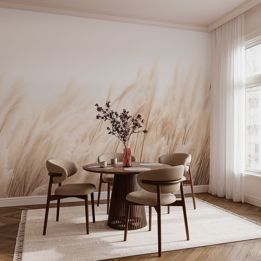 Verander elke kamer in een serene ontsnapping met de muurschildering “Gentle Waves of Tall Grass”. Stel je voor dat je een vredige weide binnenstapt telkens als je binnenkomt. Het zachte, vloeiende gras van deze muurschildering zorgt voor een vleugje natuur zonder vervelende insecten of niesbuien door allergieën. Het kan gemakkelijk een lege muur opfleuren en een gezellige, luchtige sfeer toevoegen die perfect is voor een leeshoek of woonkamer.