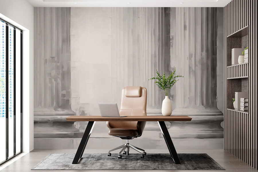 Transformeer elke kamer met deze prachtige muurschildering met een opvallende groep pilaren en zuilen. Het is alsof je een stuk oude architectuur in je kamer uitnodigt en een sfeer toevoegt die elegantie en kracht uitstraalt. Stel je voor dat je je woonkamer binnenstapt en een gevoel van grandeur krijgt, alsof je naar een majestueuze binnenplaats bent getransporteerd.