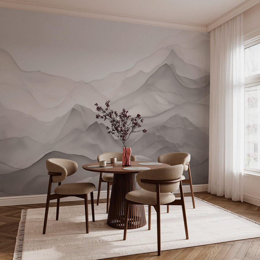 Transformeer je ruimte met de serene muurschildering “White Mountains”, perfect voor wie hunkert naar een vleugje natuur zonder drama. De zachte lijnen en zachte tinten creëren een kalme sfeer, waardoor je je meteen thuis voelt. Stel je voor dat je ‘s ochtends aan je koffie nipt terwijl je naar deze gedempte pieken staart en je het gevoel hebt dat je op een rustig berguitstapje bent. Vrienden zullen waarschijnlijk langskomen en zeggen: “Wow, dit doet me denken aan een rustige wandeling!”. Of het nu een slaapkamer, woonkamer of zelfs een leeshoekje is, deze muurschildering voegt precies de juiste hoeveelheid verfijning en chill toe. Perfect voor momenten van ontspanning of inspiratie!
