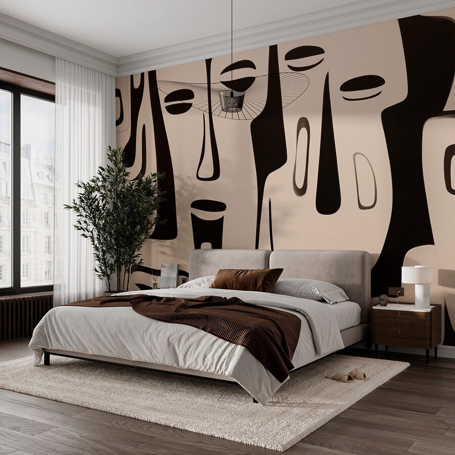 Transformeer elke kamer met deze opvallende zwart-witte muurschildering. Het is als een conversatie starter, direct aan je muur! Stel je voor dat je vrienden ontvangt en dat iedereen in diepe gesprekken vervalt terwijl je die gedurfde vormen en mysterieuze uitdrukkingen bewondert. Deze muurschildering geeft een gevoel van moderne kunst die hint naar onbekende verhalen – het is zowel rustgevend als stimulerend. Stel je voor dat je een ruimte binnenloopt en je voelt elke keer dat kleine vonkje inspiratie. Het is een perfecte achtergrond voor gezellige avonden of bruisende bijeenkomsten, waarbij stijl en persoonlijkheid moeiteloos samengaan. Geef die muren het verhaal dat ze verdienen!