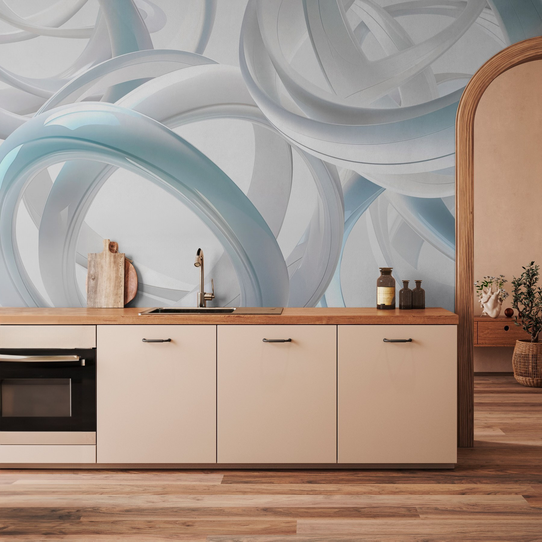 Transformeer je ruimte met deze opvallende muurschildering met een speelse dans van witte ringen. Het is alsof je een stuk moderne kunst in je woonkamer brengt! Stel je voor hoe het elke gast zal opvallen, als een vriendelijke gespreksstarter die subtiel zegt: “Ja, ik woon hier.” De overlappende vormen creëren een gevoel van diepte, waardoor de kamer ruimtelijker aanvoelt. Perfect voor een gezellige leeshoek of zelfs een levendig kantoor. Bovendien kan de luchtige sfeer je opbeuren, waardoor elke dag een beetje lichter aanvoelt. Wie wist dat een muurschildering een oppepper kon zijn? Stel het je voor: de zachte, vloeiende lijnen nodigen je uit om een beetje te dromen.